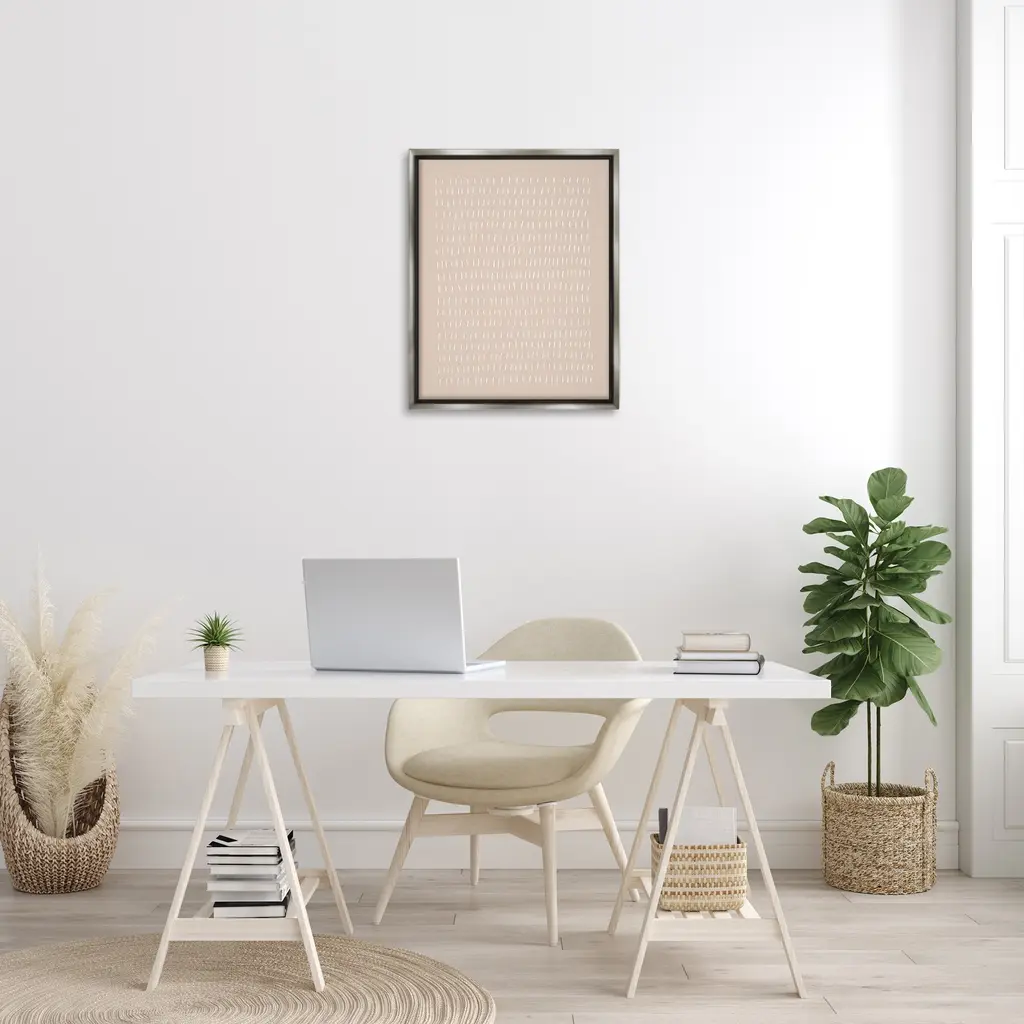 Stupell Beige Dash Pattern Framed Floater Canvas Wall Art Design By Victoria Borges - 25 X 31 - Grey