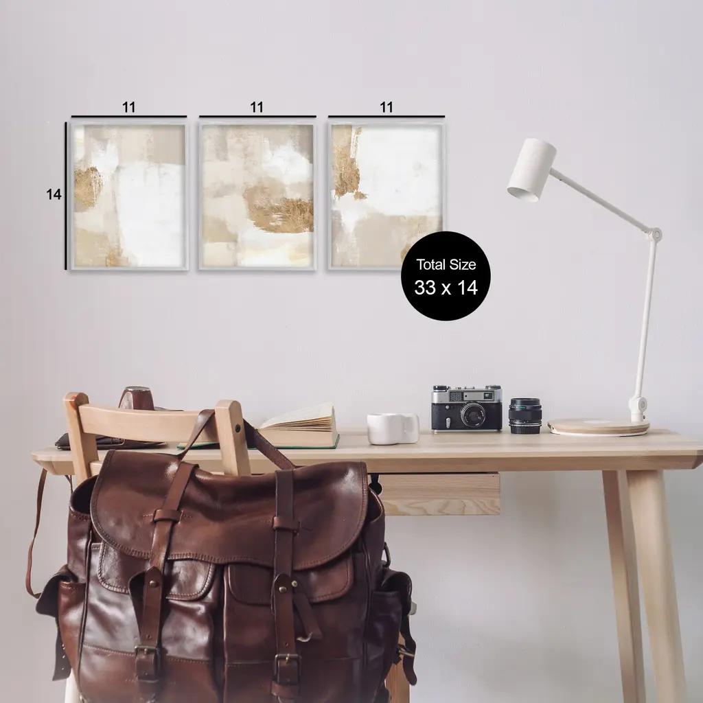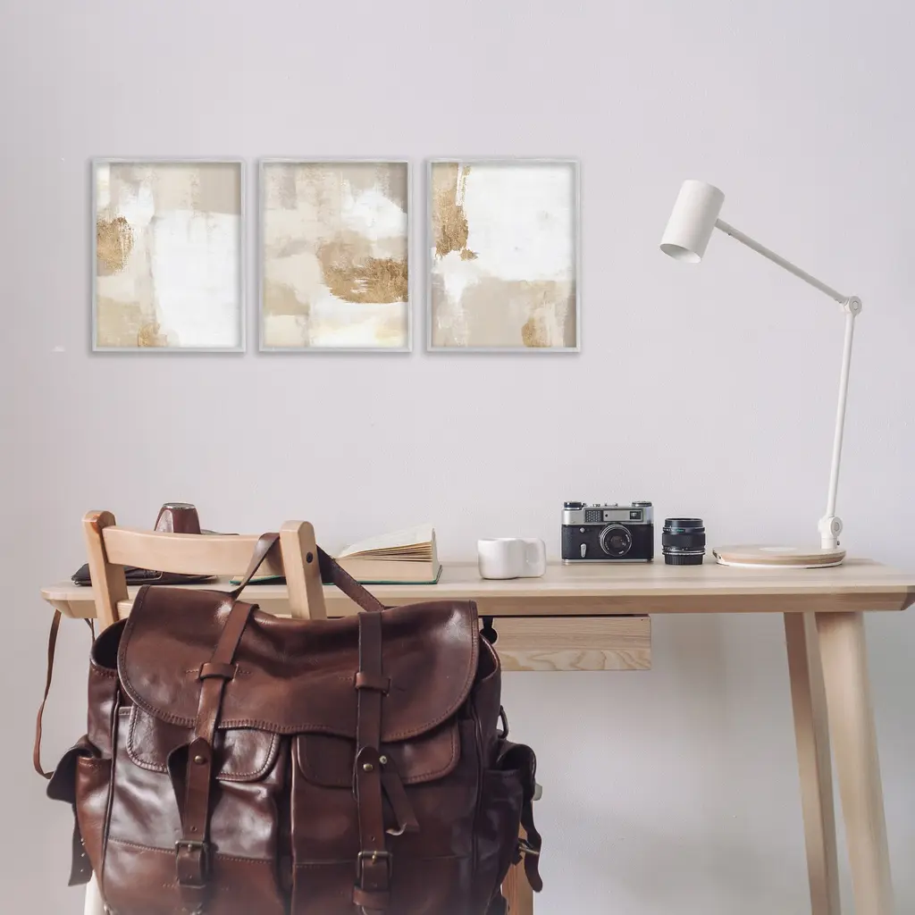 Fill any space in your home or office with our Framed Wall Art Sets. Our framed artwork is securely mounted into a 1.5-inch thick wood grain frame and ready to hang. Frames are available in three alluring styles: black, gray farmhouse and white. Stupell Wall Art is made in the USA.Features: Dimensions: 3 Piece Set, Each Panel is 11 x 1.5 x 14 FramedFramed Giclee Set Sizes Include Standard: 3pc, Each is 11 x 1.5 x 14 Large: 3pc, Each is 16 x 1.5 x 20 Oversized: 3pc, Each is 24 x 1.5 x 30Wall Art is Ready to Hang with Hardware Free Hanging. No installation required. For Easy Set Up Lean or Layer Artwork on Shelf or Against Wall.Curated Wall Art Sets make it easy for you complete the theme for any room. Our giclée prints are carefully mounted on a durable MDF backing, and then perfectly finished in a 1.5 inch thick woodgrain frame. Mounted frame colors include black, gray farmhouse and white. Made In USA.Artwork Relates To: Painting, Abstract, Modern, BeigeDesign by Ros Ruseva