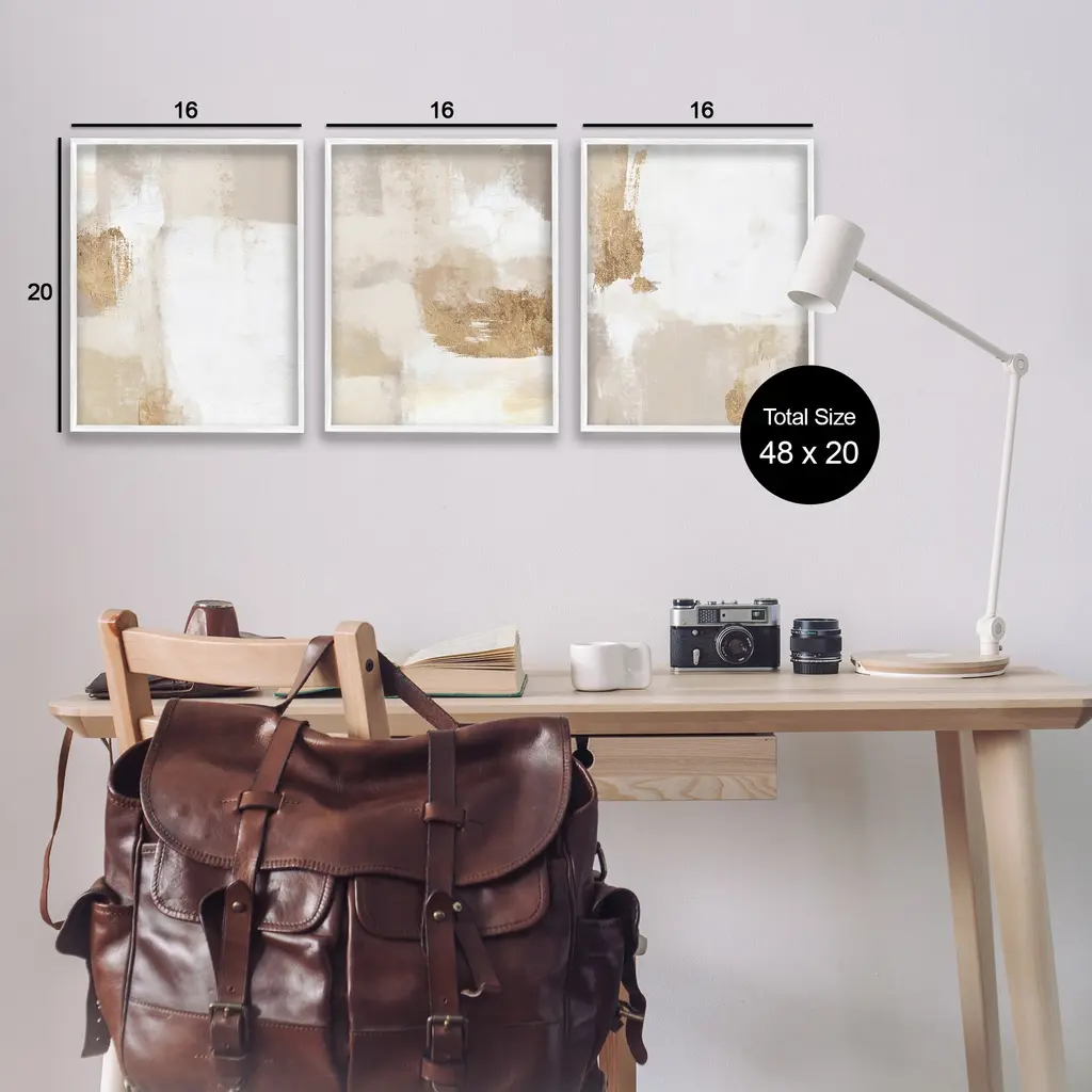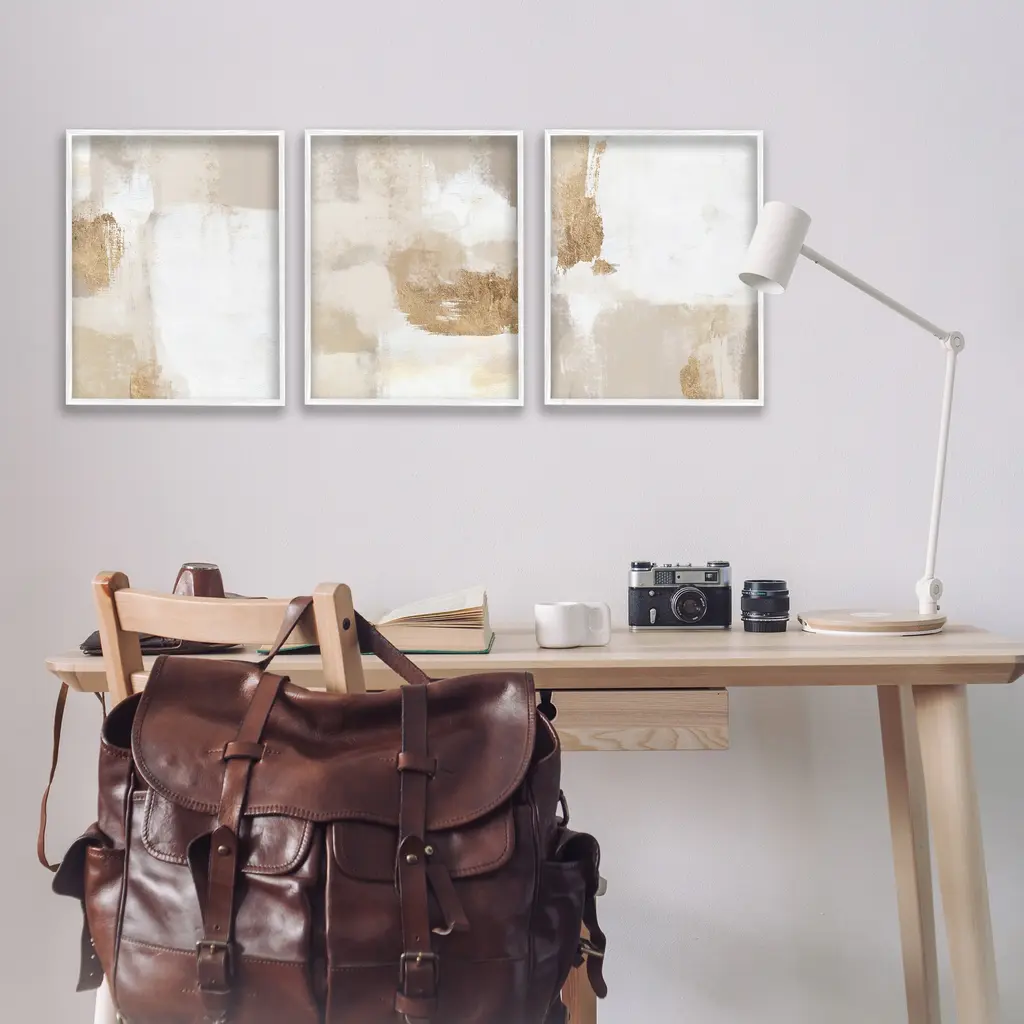 Fill any space in your home or office with our Framed Wall Art Sets. Our framed artwork is securely mounted into a 1.5-inch thick wood grain frame and ready to hang. Frames are available in three alluring styles: black, gray farmhouse and white. Stupell Wall Art is made in the USA.Features: Dimensions: 3 Piece Set, Each Panel is 11 x 1.5 x 14 FramedFramed Giclee Set Sizes Include Standard: 3pc, Each is 11 x 1.5 x 14 Large: 3pc, Each is 16 x 1.5 x 20 Oversized: 3pc, Each is 24 x 1.5 x 30Wall Art is Ready to Hang with Hardware Free Hanging. No installation required. For Easy Set Up Lean or Layer Artwork on Shelf or Against Wall.Curated Wall Art Sets make it easy for you complete the theme for any room. Our giclée prints are carefully mounted on a durable MDF backing, and then perfectly finished in a 1.5 inch thick woodgrain frame. Mounted frame colors include black, gray farmhouse and white. Made In USA.Artwork Relates To: Painting, Abstract, Modern, BeigeDesign by Ros Ruseva