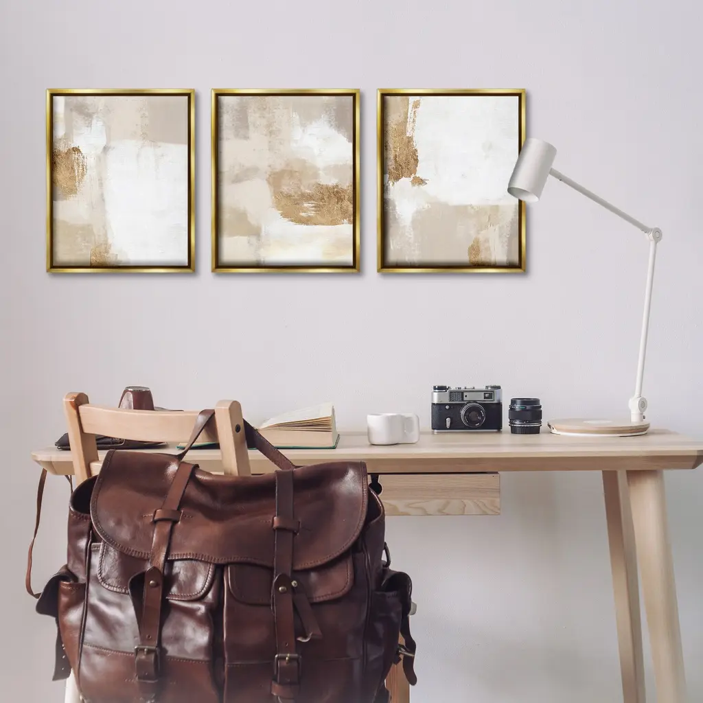Elevate your home or office to the next level with Stupell Framed Floating Canvas Wall Art. Our premium hand-stretched canvas is mounted securely into a sturdy lightweight frame. The museum-style gap between the wrapped canvas and the box frame gives the illusion of floating artwork. Stupell Wall Art is made in the USA.Features: Dimensions: 3 Piece Set, Each Frame is 17 x 1.7 x 21Three Piece Floater Framed Canvas are available as 17x21 or 25x31 Panels. All Floater Frame Products have a 1.7" Depth.Wall Art is Ready to Hang with Hardware Free Hanging. No Installation required. For Easy Set Up Lean or Layer Artwork on Shelf or Against Wall. Artwork is Permently Fixed into the Frame.Our elevated 1.7" Thick Floating Frame is the perfect complement to our canvas style Wall Art. We use only the highest quality inks in house with industry leading printing solutions. Canvas is hand stretched over a durable wood foundation and then mounted securly into a Modern Box Frame. Made in the USA.Artwork Relates To: Painting, Abstract, Modern, Beige, NeutralDesign by Ros Ruseva