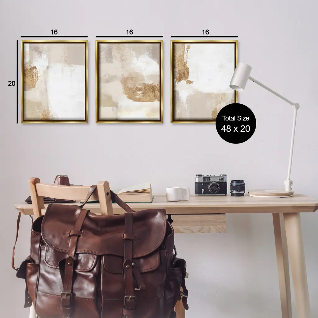 Stupell Beige Modern Abstraction Framed Floater Canvas Wall Art Design By Ros Ruseva (Set Of 3) - 17 X 21 - Gold