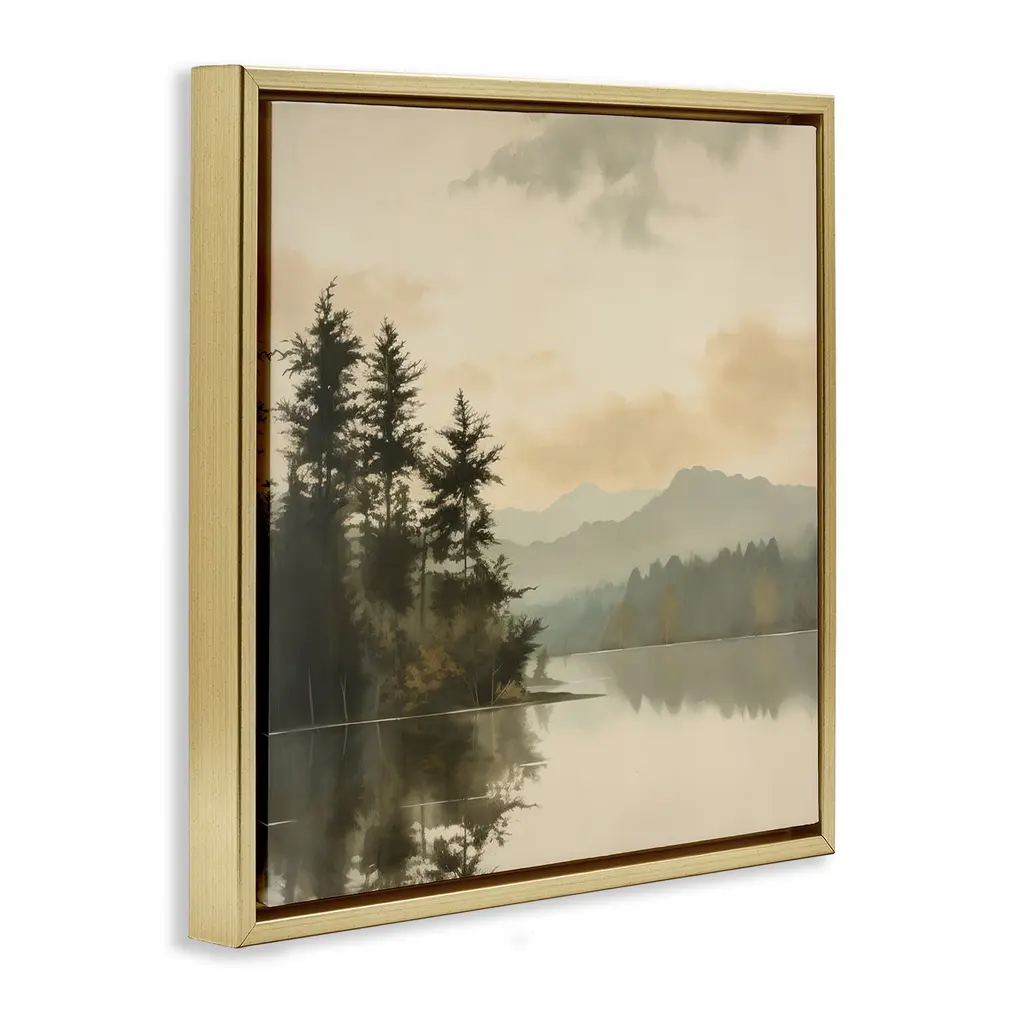 Elevate your home or office to the next level with Stupell Framed Floating Canvas Wall Art. Our premium hand-stretched canvas is mounted securely into a sturdy lightweight frame. The museum-style gap between the wrapped canvas and the box frame gives the illusion of floating artwork. Stupell Wall Art is made in the USA.Features: Dimensions: 18 x 1.7 x 18 Frame, 17 x 1.5 x 17 Canvas ArtFloating Frame Canvas Products are available in sizes 18"x18" and 25"x25". All Floating Frame Canvas Products have a 1.7" Depth.Wall Art is Ready to Hang with Hardware Free Hanging. No Installation required. For Easy Set Up Lean or Layer Artwork on Shelf or Against Wall. Artwork is Permently Fixed into the Frame.Our elevated 1.7" Thick Floating Frame is the perfect complement to our canvas style Wall Art. We use only the highest quality inks in house with industry leading printing solutions. Canvas is hand stretched over a durable wood foundation and then mounted securly into a Modern Box Frame. Made in the USA.Artwork Relates To: Nature, Water, Scenery, Lake, Mist, Landscape, Pine, Woodland, MountainDesign by Irena Orlov