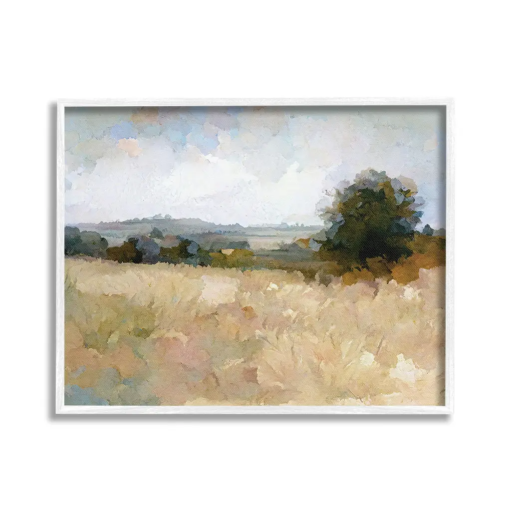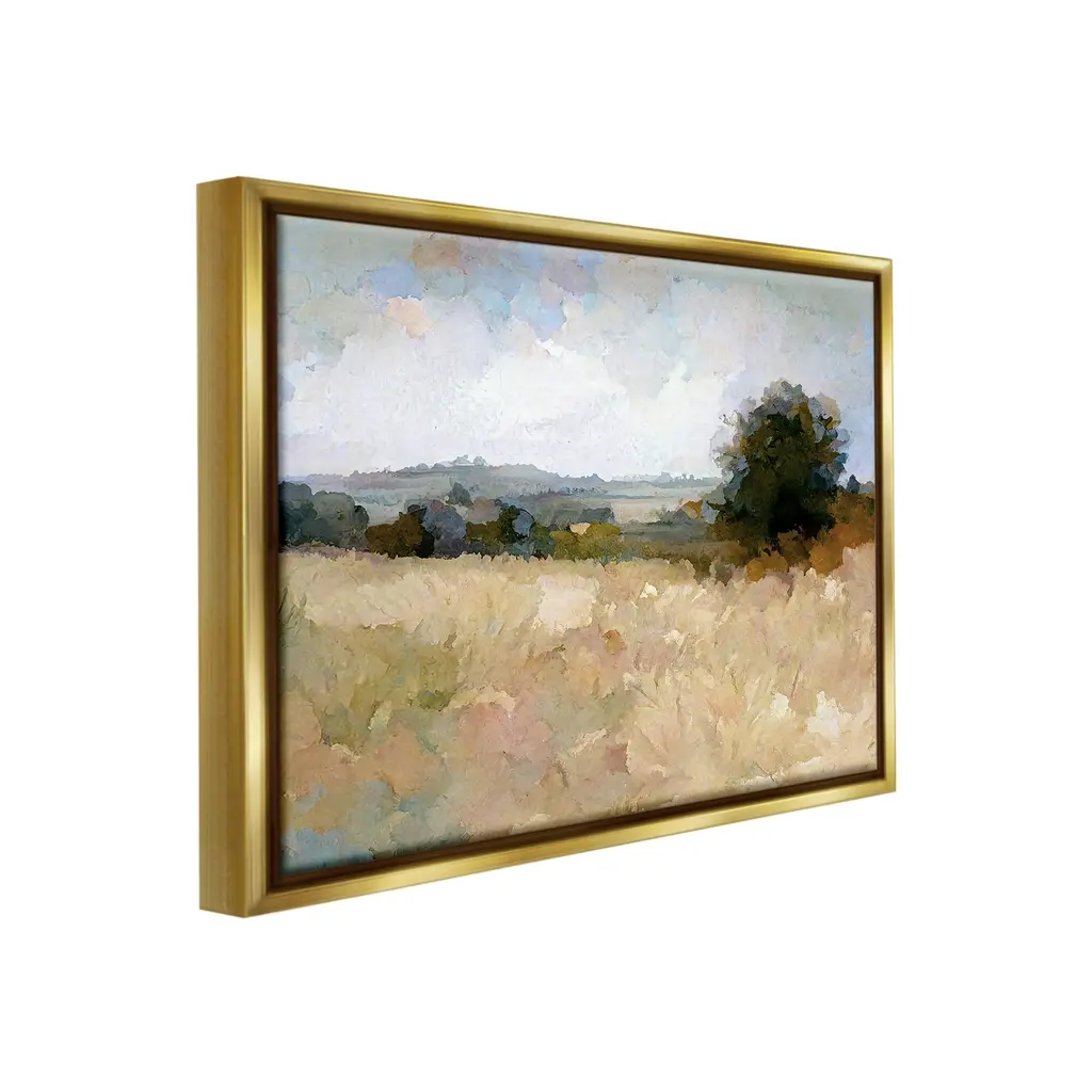 Stupell Beige Rural Field Framed Floater Canvas Wall Art Design By Gina Kelly - 21 X 17 - Gold