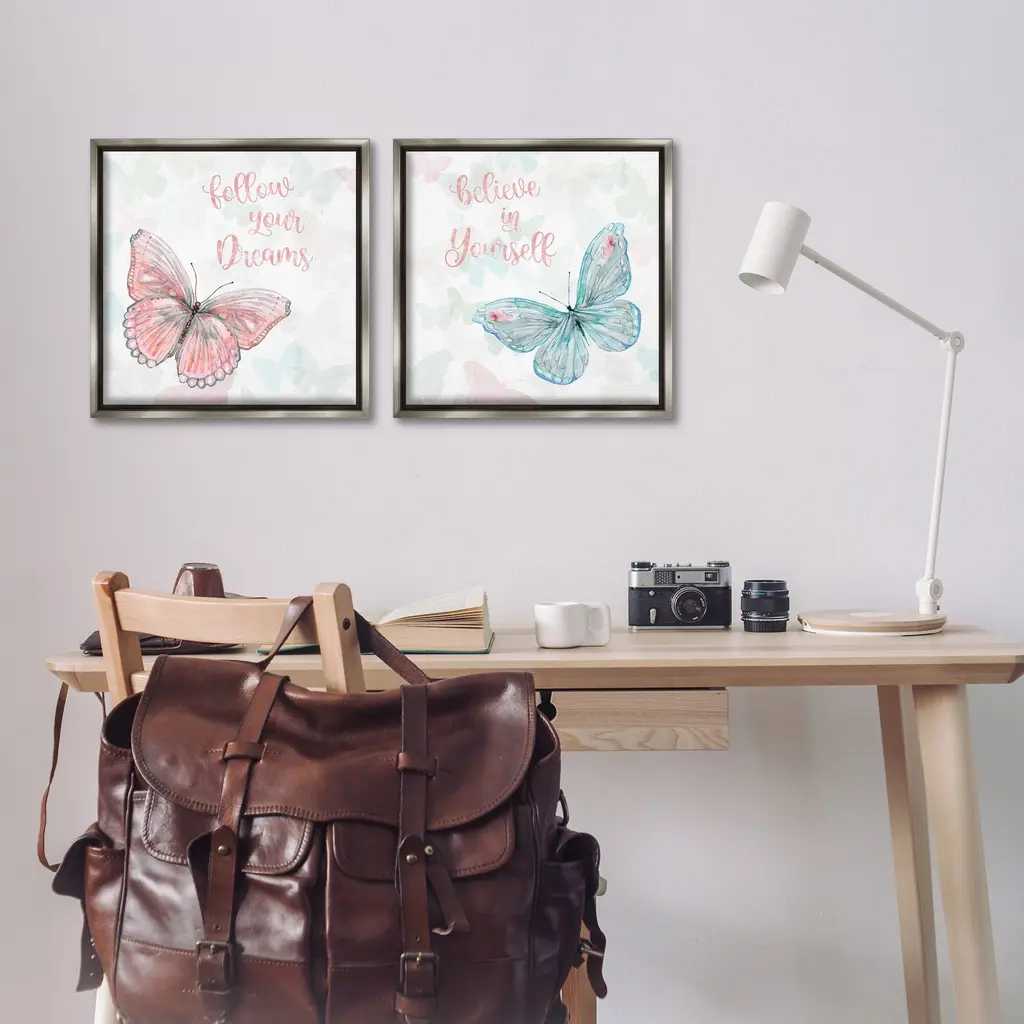 Stupell Believe In Dreams Butterflies Framed Floater Canvas Wall Art Design By Carol Robinson (Set Of 2) - 18 X 18 - Grey