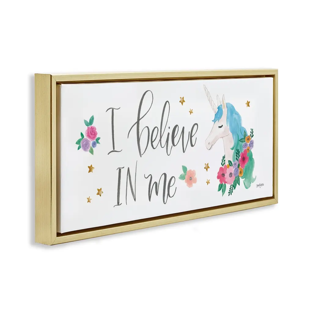 Elevate your home or office to the next level with Stupell Framed Floating Canvas Wall Art. Our premium hand-stretched canvas is mounted securely into a sturdy lightweight frame. The museum-style gap between the wrapped canvas and the box frame gives the illusion of floating artwork. Stupell Wall Art is made in the USA.Features: Dimensions: 25 x 1.7 x 11 Frame, 24 x 1.5 x 10 Canvas ArtFloating Frame Canvas Products are available in sizes 25"x11" and 31"x14". All Floating Frame Canvas Products have a 1.7" Depth.Wall Art is Ready to Hang with Hardware Free Hanging. No Installation required. For Easy Set Up Lean or Layer Artwork on Shelf or Against Wall. Artwork is Permently Fixed into the Frame.Our elevated 1.7" Thick Floating Frame is the perfect complement to our canvas style Wall Art. We use only the highest quality inks in house with industry leading printing solutions. Canvas is hand stretched over a durable wood foundation and then mounted securly into a Modern Box Frame. Made in the USA.Artwork Relates To: Fantasy, Unicorn, Animal, Rainbow, Nature, Modern, Pastel, Inspirational, ConfidenceDesign by Jenaya Jordan