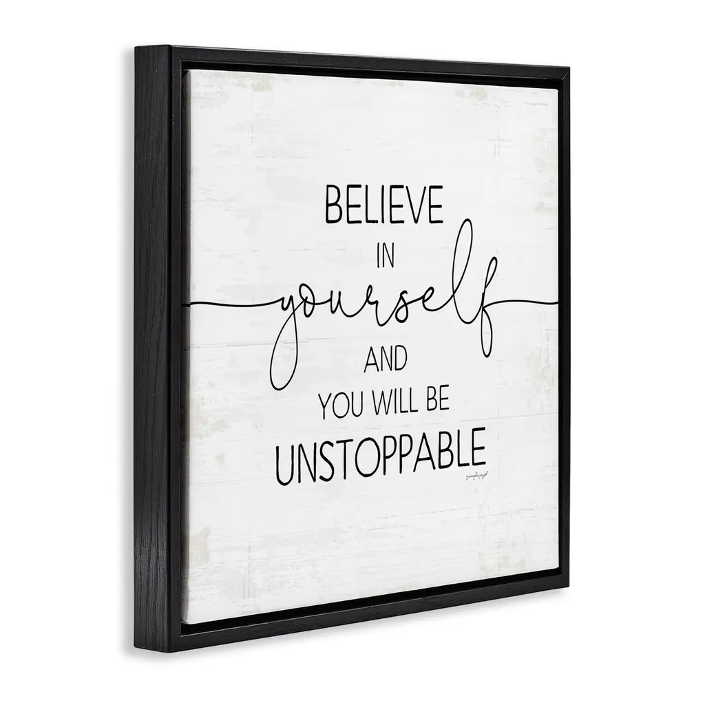 Stupell Believe In Yourself Inspirational Framed Floater Canvas Wall Art Design By Jennifer Pugh - 18 X 18 - Black