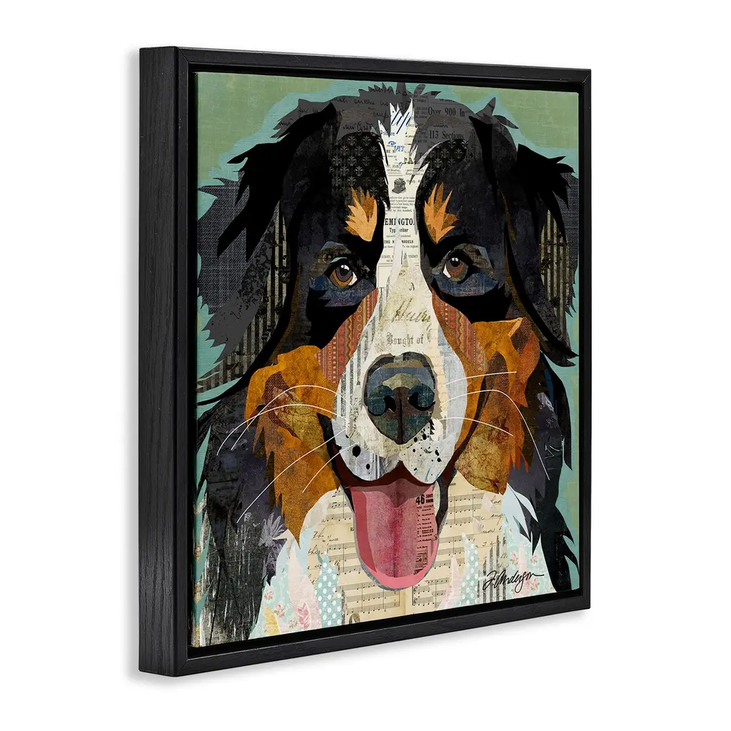 Elevate your home or office to the next level with Stupell Framed Floating Canvas Wall Art. Our premium hand-stretched canvas is mounted securely into a sturdy lightweight frame. The museum-style gap between the wrapped canvas and the box frame gives the illusion of floating artwork. Stupell Wall Art is made in the USA.Features: Dimensions: 18 x 1.7 x 18 Frame, 17 x 1.5 x 17 Canvas ArtFloating Frame Canvas Products are available in sizes 18"x18" and 25"x25". All Floating Frame Canvas Products have a 1.7" Depth.Wall Art is Ready to Hang with Hardware Free Hanging. No Installation required. For Easy Set Up Lean or Layer Artwork on Shelf or Against Wall. Artwork is Permently Fixed into the Frame.Our elevated 1.7" Thick Floating Frame is the perfect complement to our canvas style Wall Art. We use only the highest quality inks in house with industry leading printing solutions. Canvas is hand stretched over a durable wood foundation and then mounted securly into a Modern Box Frame. Made in the USA.Artwork Relates To: Modern, Collage, Dog, Pet, Bernese Mountain DogDesign by Traci Anderson