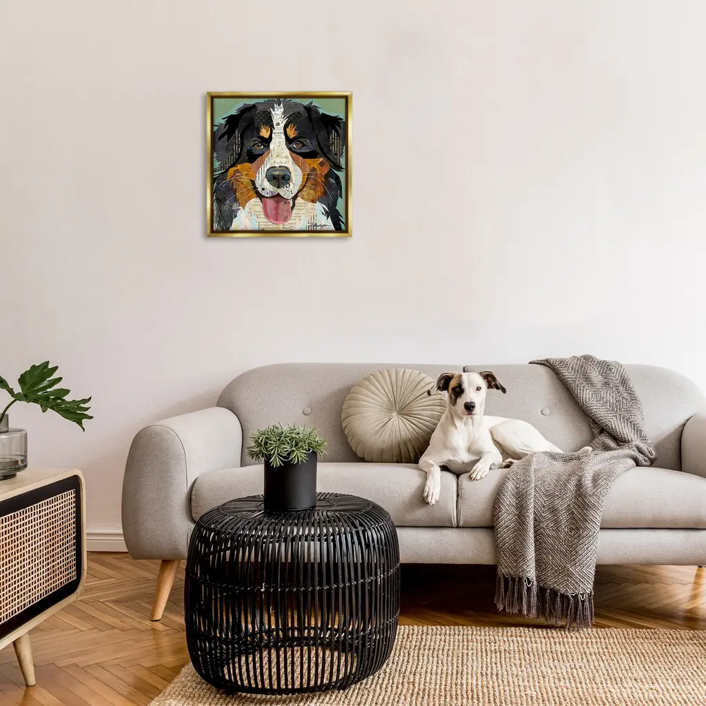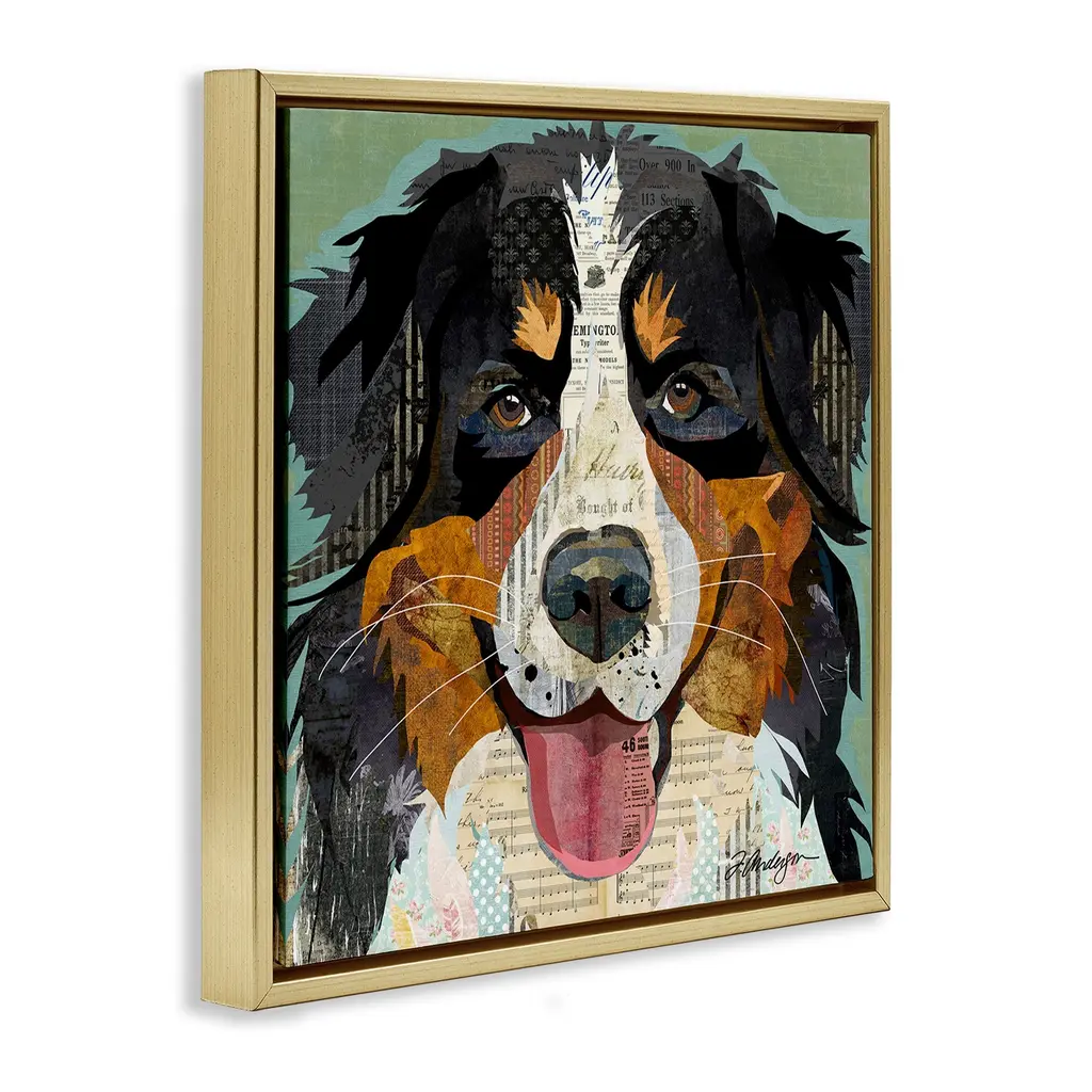 Elevate your home or office to the next level with Stupell Framed Floating Canvas Wall Art. Our premium hand-stretched canvas is mounted securely into a sturdy lightweight frame. The museum-style gap between the wrapped canvas and the box frame gives the illusion of floating artwork. Stupell Wall Art is made in the USA.Features: Dimensions: 18 x 1.7 x 18 Frame, 17 x 1.5 x 17 Canvas ArtFloating Frame Canvas Products are available in sizes 18"x18" and 25"x25". All Floating Frame Canvas Products have a 1.7" Depth.Wall Art is Ready to Hang with Hardware Free Hanging. No Installation required. For Easy Set Up Lean or Layer Artwork on Shelf or Against Wall. Artwork is Permently Fixed into the Frame.Our elevated 1.7" Thick Floating Frame is the perfect complement to our canvas style Wall Art. We use only the highest quality inks in house with industry leading printing solutions. Canvas is hand stretched over a durable wood foundation and then mounted securly into a Modern Box Frame. Made in the USA.Artwork Relates To: Modern, Collage, Dog, Pet, Bernese Mountain DogDesign by Traci Anderson