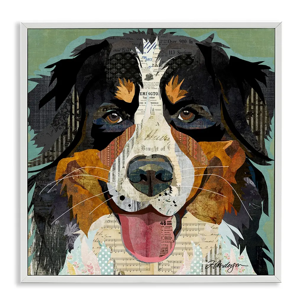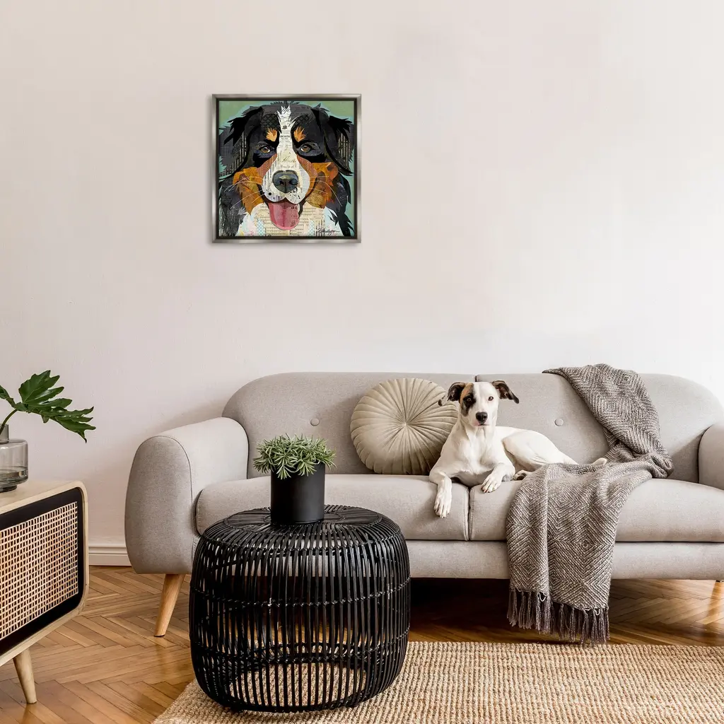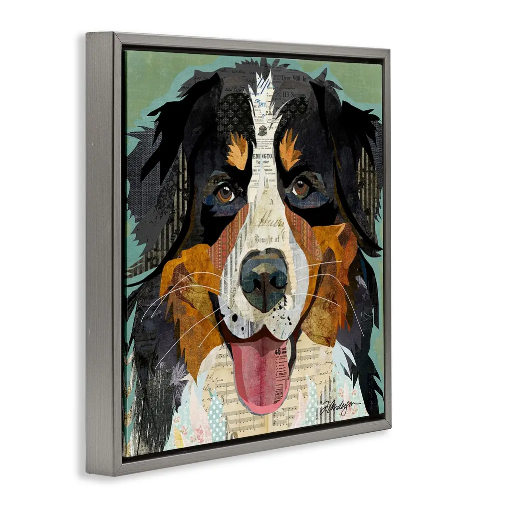 Elevate your home or office to the next level with Stupell Framed Floating Canvas Wall Art. Our premium hand-stretched canvas is mounted securely into a sturdy lightweight frame. The museum-style gap between the wrapped canvas and the box frame gives the illusion of floating artwork. Stupell Wall Art is made in the USA.Features: Dimensions: 18 x 1.7 x 18 Frame, 17 x 1.5 x 17 Canvas ArtFloating Frame Canvas Products are available in sizes 18"x18" and 25"x25". All Floating Frame Canvas Products have a 1.7" Depth.Wall Art is Ready to Hang with Hardware Free Hanging. No Installation required. For Easy Set Up Lean or Layer Artwork on Shelf or Against Wall. Artwork is Permently Fixed into the Frame.Our elevated 1.7" Thick Floating Frame is the perfect complement to our canvas style Wall Art. We use only the highest quality inks in house with industry leading printing solutions. Canvas is hand stretched over a durable wood foundation and then mounted securly into a Modern Box Frame. Made in the USA.Artwork Relates To: Modern, Collage, Dog, Pet, Bernese Mountain DogDesign by Traci Anderson