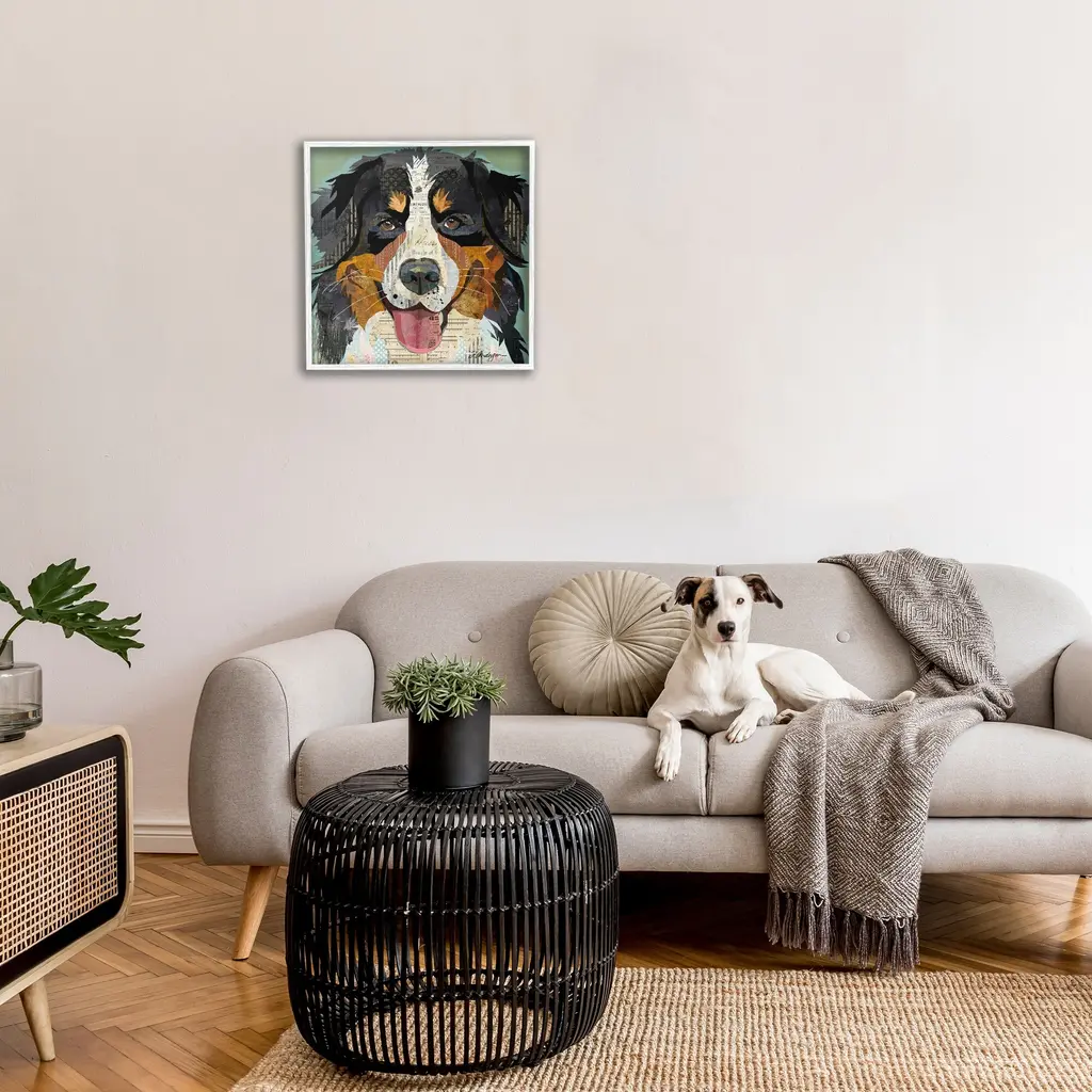 Our Framed Giclee Wall Art adds a touch of class to any space in your home or office. Frames are available in three alluring styles: black, gray farmhouse and white. Our textured artwork will add more depth and dimension to any space. Each piece is mounted with a 1.5 inch thick wood grain frame that is ready to hang! Looking for a statement piece? We have oversized artwork available.Features: Wall Art is Ready to Hang - No Installation or Hardware Needed. For Easy Set Up Lean or Layer Artwork on Shelf or Against Wall.Our giclee prints are carefully mounted on a durable MDF backing, and then perfectly finished in a 1.5 inch thick woodgrain frame. Mounted frame colors include black, gray farmhouse and white. Made In USA.Artwork Relates To: Modern Art; Painting; Collage, Dog, Pet, Bernese Mountain DogDesign by Traci Anderson