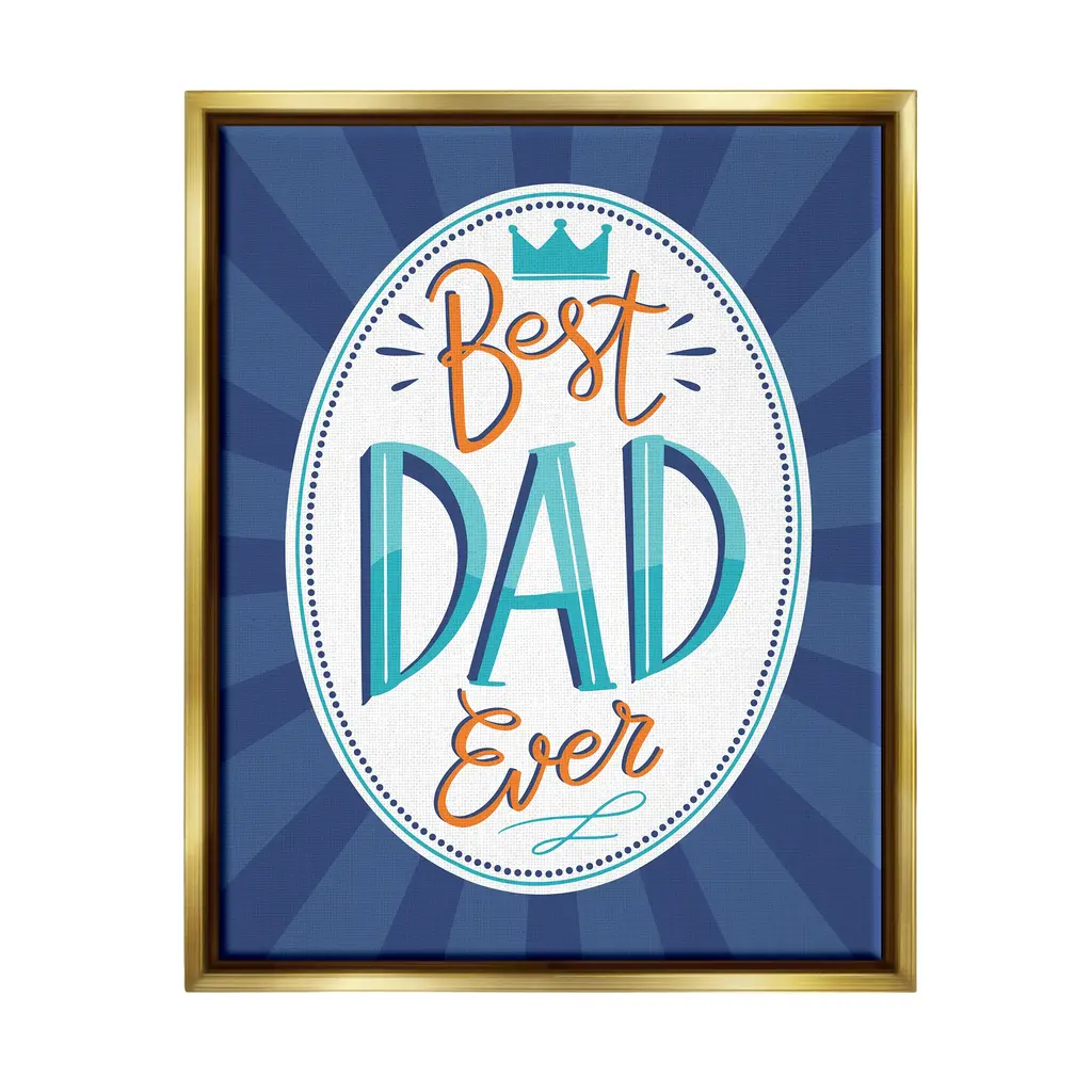Elevate your home or office to the next level with Stupell Framed Floating Canvas Wall Art. Our premium hand-stretched canvas is mounted securely into a sturdy lightweight frame. The museum-style gap between the wrapped canvas and the box frame gives the illusion of floating artwork. Stupell Wall Art is made in the USA.Features: Dimensions: 17 x 1.7 x 21 Frame, 16 x 1.5 x 20 Canvas ArtFloating Frame Sizes Include Standard: 17 x 1.7 x 21 Oversized: 25 x 1.7 x 31Wall Art is Ready to Hang - No Installation or Hardware Needed. For Easy Set Up Lean or Layer Artwork on Shelf or Against Wall.Our elevated 1.7" Thick Floating Frame is the perfect complement to our canvas style Wall Art. We use only the highest quality inks in house with industry leading printing solutions. Canvas is hand stretched over a durable wood foundation and then mounted securly into a Modern Box Frame. Made in the USA.Artwork Relates To: Father's Day, Dad, Family, Phrase, Best Dad Ever, Stripes, PatternDesign by Angela Nickeas