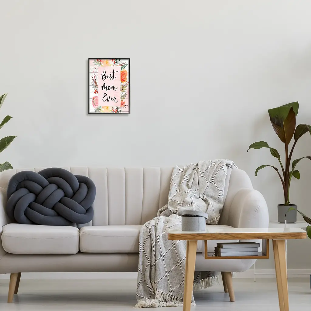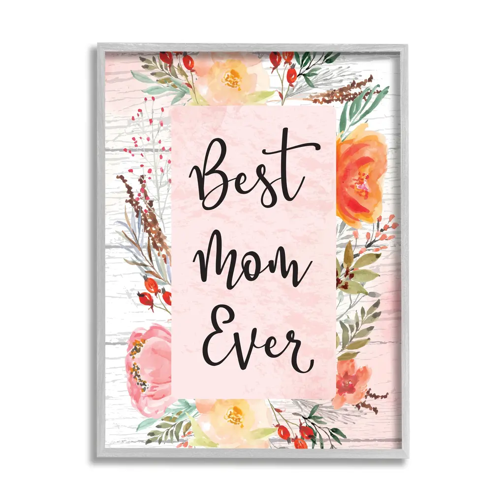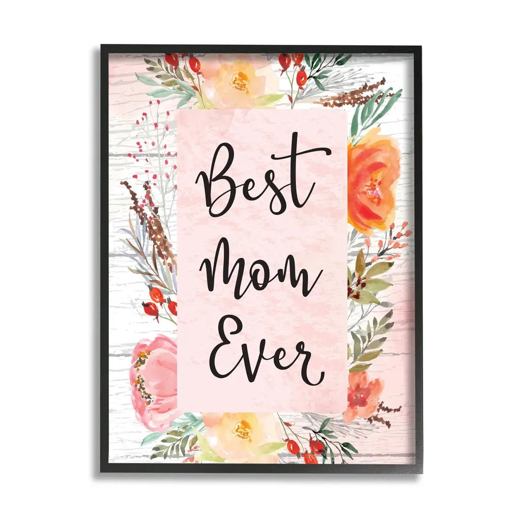 Stupell Best Mom Ever Floral Family Framed Giclee Art By Nd Art - 11 X 14 - Black