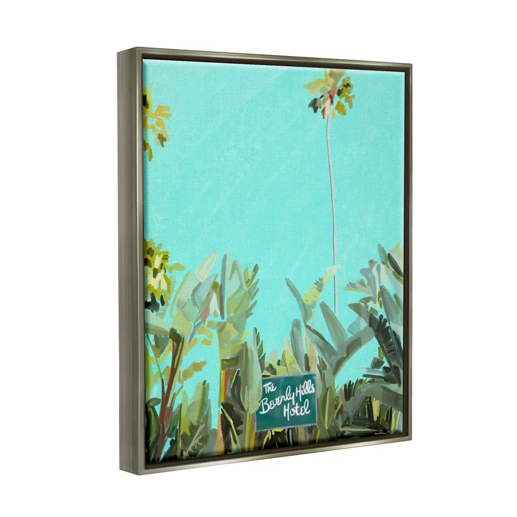 Stupell Beverly Hills Hotel Tropical Palms Framed Floater Canvas Wall Art By Amelia Noyes - 16 X 20 - Grey