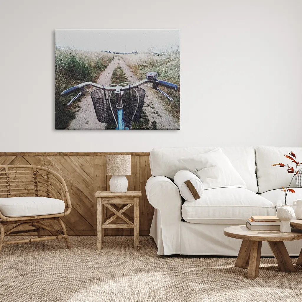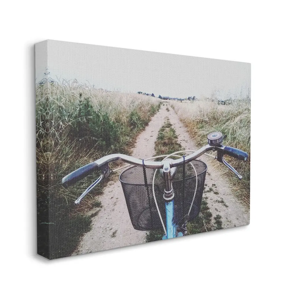 We create our stretched canvas to the highest standards. Using only the highest quality inks and canvas on Mimaki printers, we hand-cut and stretch each piece over a 1.5-inch thick wooden frame for hanging. As a result, the art comes ready to hang on the sturdy ledge with no installation required. Stupell Wall Art is made in the USA.Features: Dimensions: 20 x 1.5 x 16 InchesStretched Canvas Sizes Include Standard: 20 x 1.5 x 16 Large: 30 x 1.5 x 20 X-Large: 40 x 1.5 x 30 Oversized: 48 x 1.5 x 36Wall Art is Ready to Hang with Hardware Free Hanging. No installation required. For Easy Set Up Lean or Layer Artwork on Shelf or Against Wall.Our stretched canvas is created with the highest standards. We use only the highest quality inks and canvas on our in house Mimaki printers, and then hand cut and stretch each piece over a 1.5 inch thick wooden frame for hanging. Made In USA.Artwork Relates To: Path, Bicycle, Cycling, Nature, Trail, Nature, Landscape, PhotographyDesign by Lil' Rue