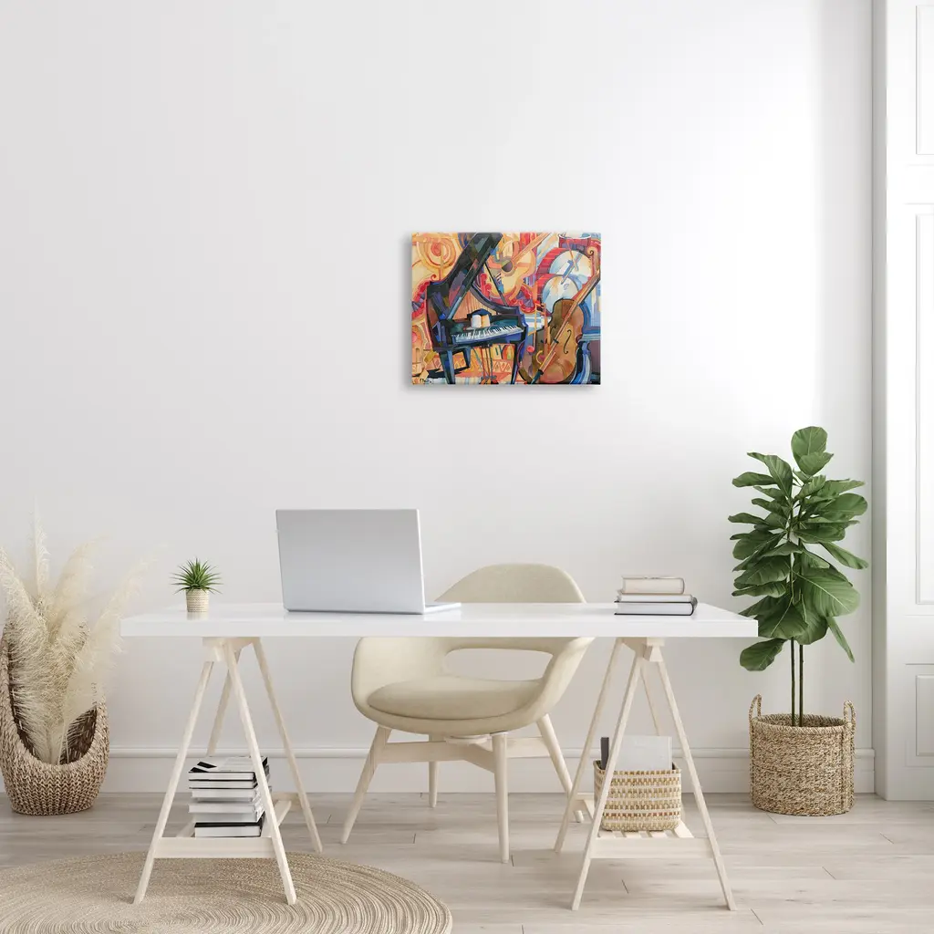 Proudly made in the USA, Our stretched canvas is created with the highest standards. We use only the highest quality inks and canvas on our in house Mimaki printers, and then hand cut and stretch each piece over a 1.5 inch thick wooden frame for hanging. The art comes ready to hang with no installation required. Not to mention, at this size, it is sure to be the focal point of any room!Features:Stretched Canvas Sizes IncludeStandard: 20 x 1.5 x 16Large: 30 x 1.5 x 20X-Large: 40 x 1.5 x 30Oversized: 48 x 1.5 x 36Wall Art is Ready to Hang - No Installation or Hardware Needed. For Easy Set Up Lean or Layer Artwork on Shelf or Against Wall.Artwork Relates To: Painting, Leisure Activities, Musical Instrument, Modern Art, Cello, Piano, Drums, CollageOur stretched canvas is created with the highest standards. We use only the highest quality inks and canvas on our in house Mimaki printers, and then hand cut and stretch each piece over a 1.5 inch thick wooden frame for hanging. Made In USA.Design by Paul Brent
