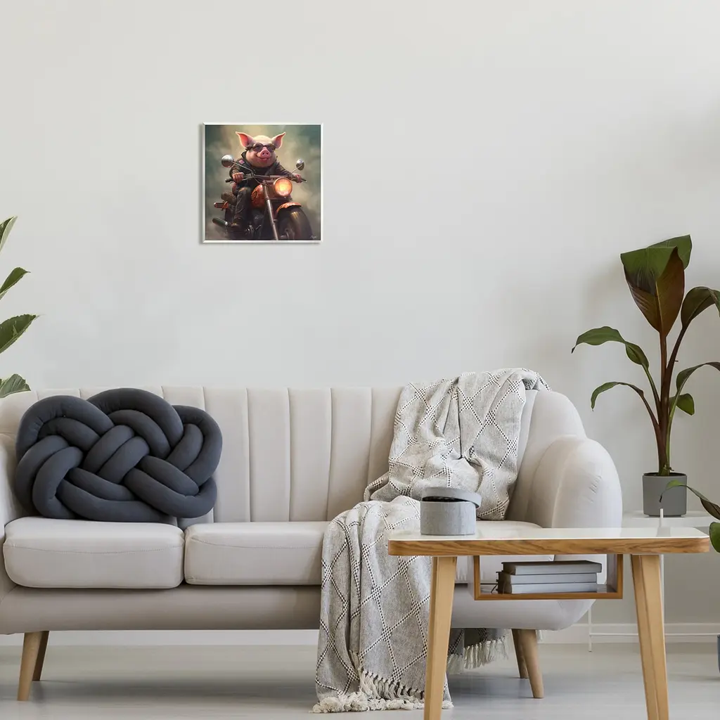 Our wall plaques start as high-quality lithograph prints mounted on durable 0.5-inch thick MDF wood. Each piece is hand finished and comes with a fresh layer of white foil on the sides to give it a crisp, clean look. Plaques arrive ready to hang without installation and come with removable plastic corners to keep them from damage in transit. Stupell Industries Wall Art is made in the USA.Features: Dimensions: 12 x 0.5 x 12 InchesWall Art is Ready to Hang with Hardware Free Hanging. No installation required. For Easy Set Up Lean or Layer Artwork on Shelf or Against Wall.All of our wall plaques start off as high quality lithograph prints that are then mounted on durable 0.5 inch thick MDF wood. Each piece is hand finished and comes with a fresh layer of foil on the sides to give it a crisp clean look. Made In USA.Artwork Relates To: Animal, Portrait, Motorcycle, Biker, PigDesign by Roozbeh