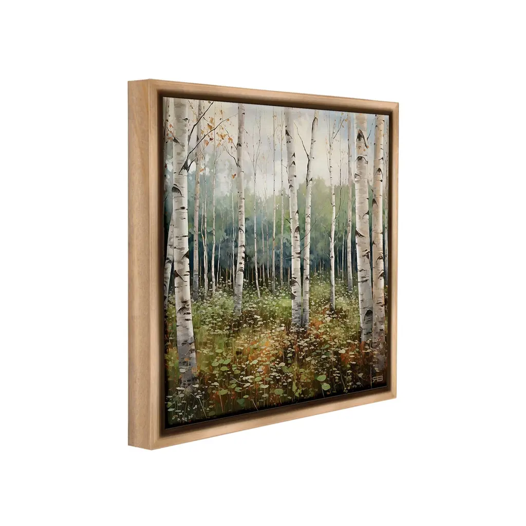 Elevate your home or office to the next level with Stupell Framed Floating Canvas Wall Art. Our premium hand-stretched canvas is mounted securely into a sturdy lightweight frame. The museum-style gap between the wrapped canvas and the box frame gives the illusion of floating artwork. Stupell Wall Art is made in the USA.Features: Dimensions: 18 x 1.7 x 18 Frame, 17 x 1.5 x 17 Canvas ArtFloating Frame Canvas Products are available in sizes 18"x18" and 25"x25". All Floating Frame Canvas Products have a 1.7" Depth.Wall Art is Ready to Hang with Hardware Free Hanging. No Installation required. For Easy Set Up Lean or Layer Artwork on Shelf or Against Wall. Artwork is Permently Fixed into the Frame.Our elevated 1.7" Thick Floating Frame is the perfect complement to our canvas style Wall Art. We use only the highest quality inks in house with industry leading printing solutions. Canvas is hand stretched over a durable wood foundation and then mounted securly into a Modern Box Frame. Made in the USA.Artwork Relates To: Plant, Tree, Vegetation, Grove, Land, Nature, Woodland, Scenery, Birch, Forest, LandscapeDesign by RB