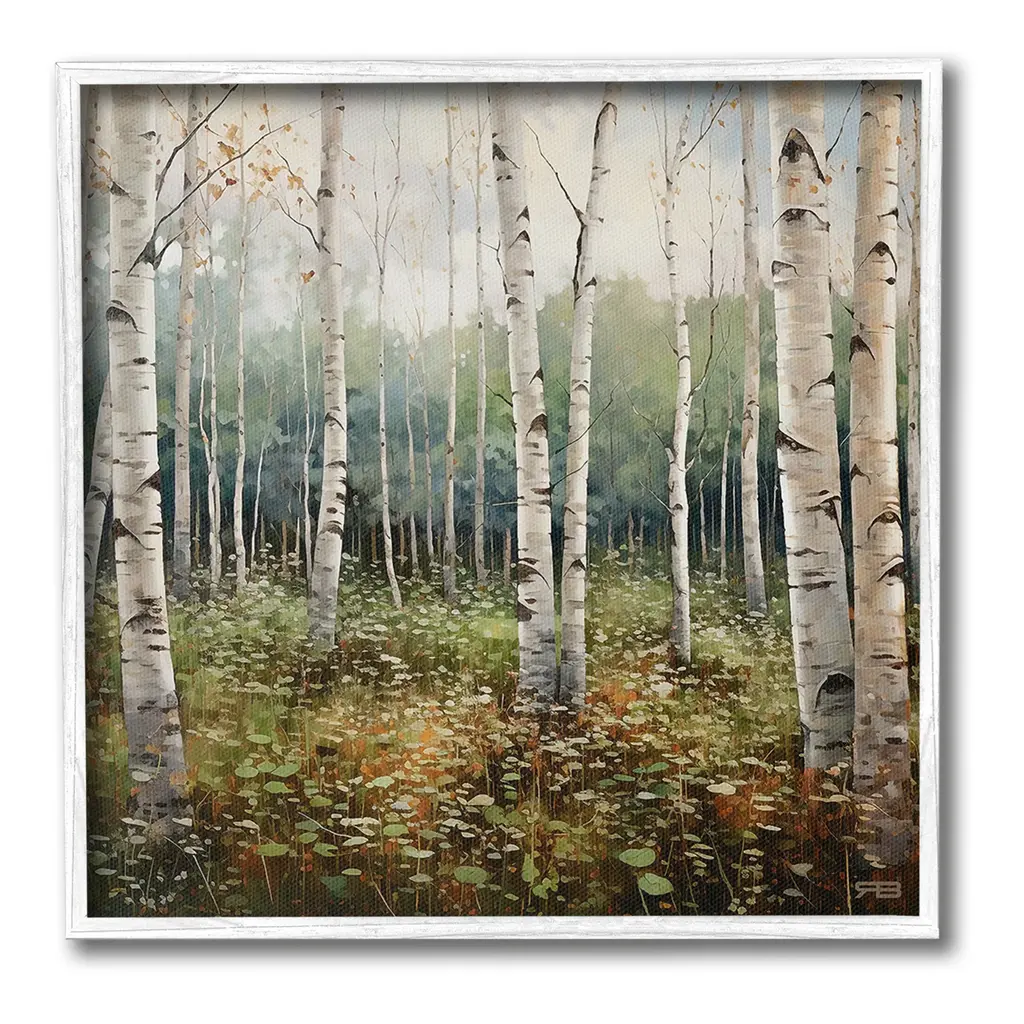 Add dimension to any room with our textured Framed Giclee Artwork. Our framed artwork is securely mounted into a 1.5-inch thick wood grain frame and ready to hang. Frames are available in three alluring styles: black, gray farmhouse and white. In addition, you should check out our oversized options if you want a statement piece. Stupell Wall Art is made in the USA.Features: Dimensions: 12 x 1.5 x 12 FramedFramed Giclee Product Sizes Include 12"x12", 17"x17", and 24"x24". Framed Giclee Products have a 1.5" Depth. Wall Art is Ready to Hang with Hardware Free Hanging. No installation required. For Easy Set Up Lean or Layer Artwork on Shelf or Against Wall.Our giclée prints are carefully mounted on a durable MDF backing, and then perfectly finished in a 1.5 inch thick woodgrain frame. Mounted frame colors include black, gray farmhouse and white. Made In USA.Artwork Relates To: Plant, Tree, Vegetation, Grove, Land, Nature, Woodland, Scenery, Birch, Forest, LandscapeDesign by RB