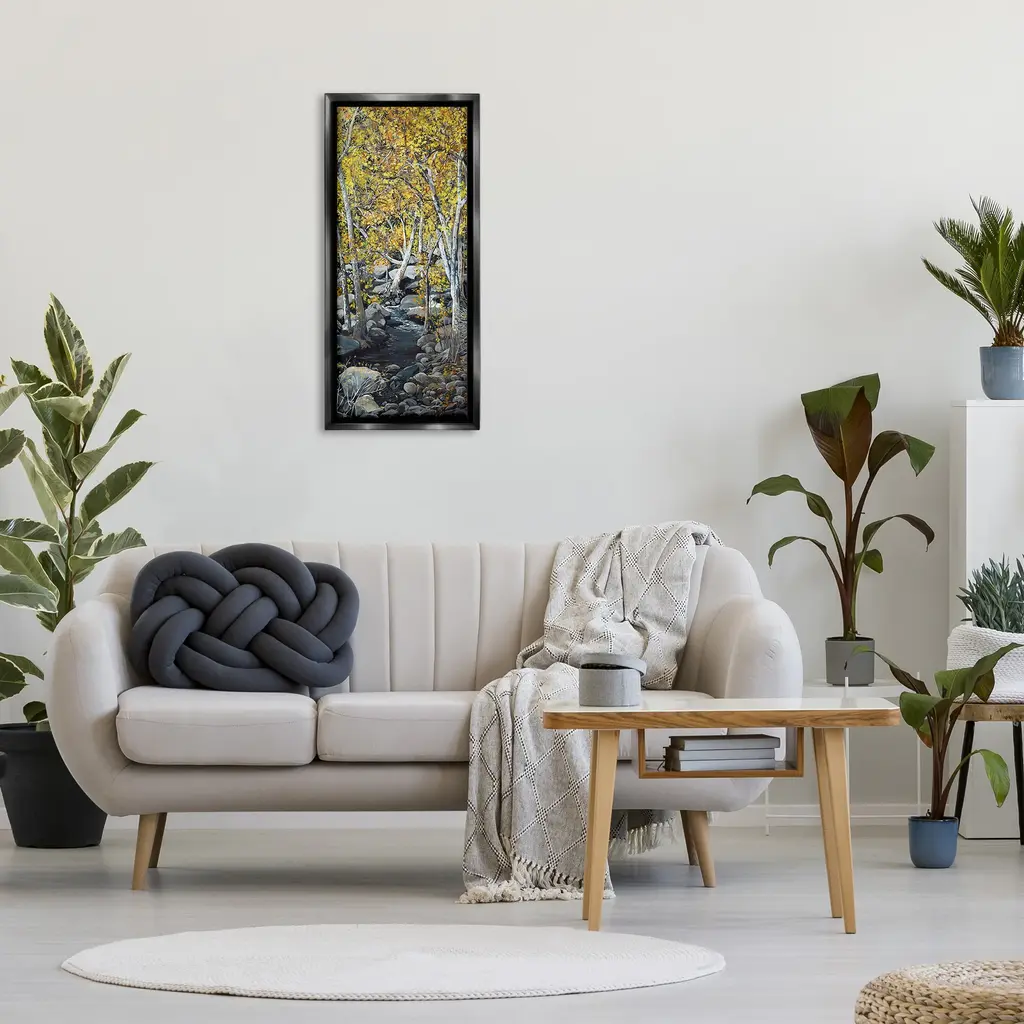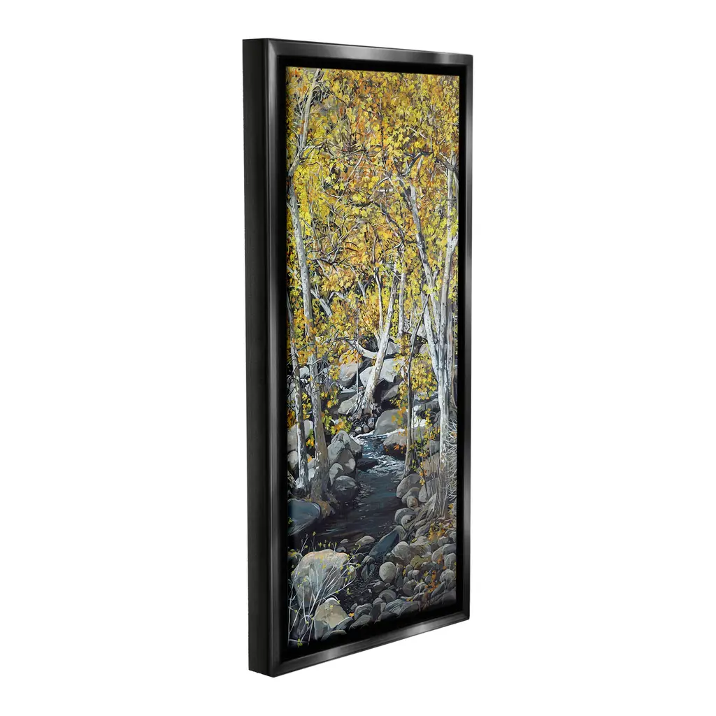 Elevate your home or office to the next level with Stupell Framed Floating Canvas Wall Art. Our premium hand-stretched canvas is mounted securely into a sturdy lightweight frame. The museum-style gap between the wrapped canvas and the box frame gives the illusion of floating artwork. Stupell Wall Art is made in the USA.Features: Dimensions: 11 x 1.7 x 25 Frame, 10 x 1.5 x 24 Canvas ArtFloating Frame Canvas Products are available in sizes 11"x25" and 14"x31". All Floating Frame Canvas Products have a 1.7" Depth.Wall Art is Ready to Hang with Hardware Free Hanging. No Installation required. For Easy Set Up Lean or Layer Artwork on Shelf or Against Wall. Artwork is Permently Fixed into the Frame.Our elevated 1.7" Thick Floating Frame is the perfect complement to our canvas style Wall Art. We use only the highest quality inks in house with industry leading printing solutions. Canvas is hand stretched over a durable wood foundation and then mounted securly into a Modern Box Frame. Made in the USA.Artwork Relates To: Tree, Nature, Wilderness, Scenery, Woodland, Stream, Water, Creek, Landscape, Birch, RocksDesign by Nadi Spencer