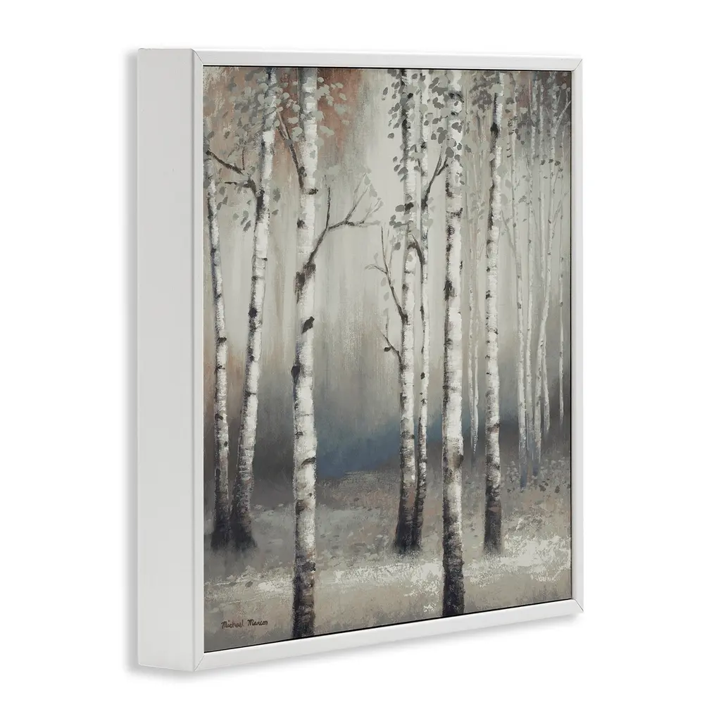 Stupell Birch Trees Misty Haze Grey Forest Scene Framed Wall Art - 12 X 12 - White