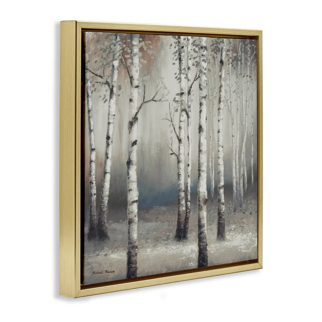 Elevate your home or office to the next level with Stupell Framed Floating Canvas Wall Art. Our premium hand-stretched canvas is mounted securely into a sturdy lightweight frame. The museum-style gap between the wrapped canvas and the box frame gives the illusion of floating artwork. Stupell Wall Art is made in the USA.Features: Dimensions: 18 x 1.7 x 18 Frame, 17 x 1.5 x 17 Canvas ArtFloating Frame Canvas Products are available in sizes 18"x18" and 25"x25". All Floating Frame Canvas Products have a 1.7" Depth.Wall Art is Ready to Hang with Hardware Free Hanging. No Installation required. For Easy Set Up Lean or Layer Artwork on Shelf or Against Wall. Artwork is Permently Fixed into the Frame.Our elevated 1.7" Thick Floating Frame is the perfect complement to our canvas style Wall Art. We use only the highest quality inks in house with industry leading printing solutions. Canvas is hand stretched over a durable wood foundation and then mounted securly into a Modern Box Frame. Made in the USA.Artwork Relates To: Landscape, Forest, Trees, Birch, WoodlandDesign by Michael Marcon