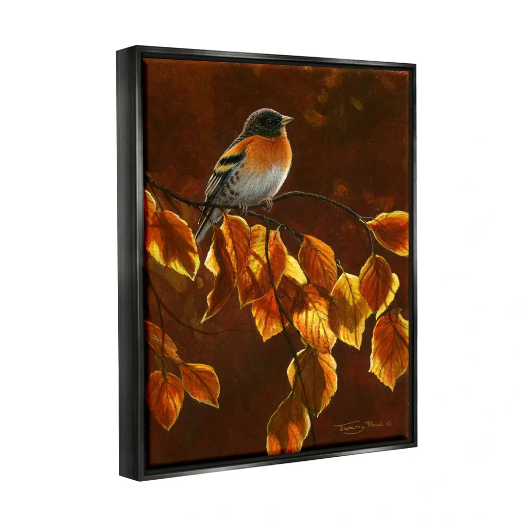 Elevate your home or office to the next level with Stupell Framed Floating Canvas Wall Art. Our premium hand-stretched canvas is mounted securely into a sturdy lightweight frame. The museum-style gap between the wrapped canvas and the box frame gives the illusion of floating artwork. Stupell Wall Art is made in the USA.Features: Dimensions: 17 x 1.7 x 21 Frame, 16 x 1.5 x 20 Canvas ArtFloating Frame Sizes Include Standard: 17 x 1.7 x 21 Oversized: 25 x 1.7 x 31Wall Art is Ready to Hang - No Installation or Hardware Needed. For Easy Set Up Lean or Layer Artwork on Shelf or Against Wall.Our elevated 1.7" Thick Floating Frame is the perfect complement to our canvas style Wall Art. We use only the highest quality inks in house with industry leading printing solutions. Canvas is hand stretched over a durable wood foundation and then mounted securly into a Modern Box Frame. Made in the USA.Artwork Relates To: Leaf, Plant, Animal, Bird, Finch, Tree, Bee Eater, Sparrow, BeakDesign by Jeremy Paul