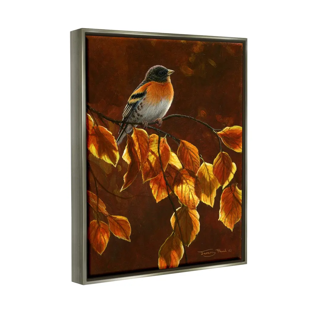 Stupell Bird Brown Sunlit Foliage Framed Floater Canvas Wall Art By Jeremy Paul - 16 X 20 - Grey
