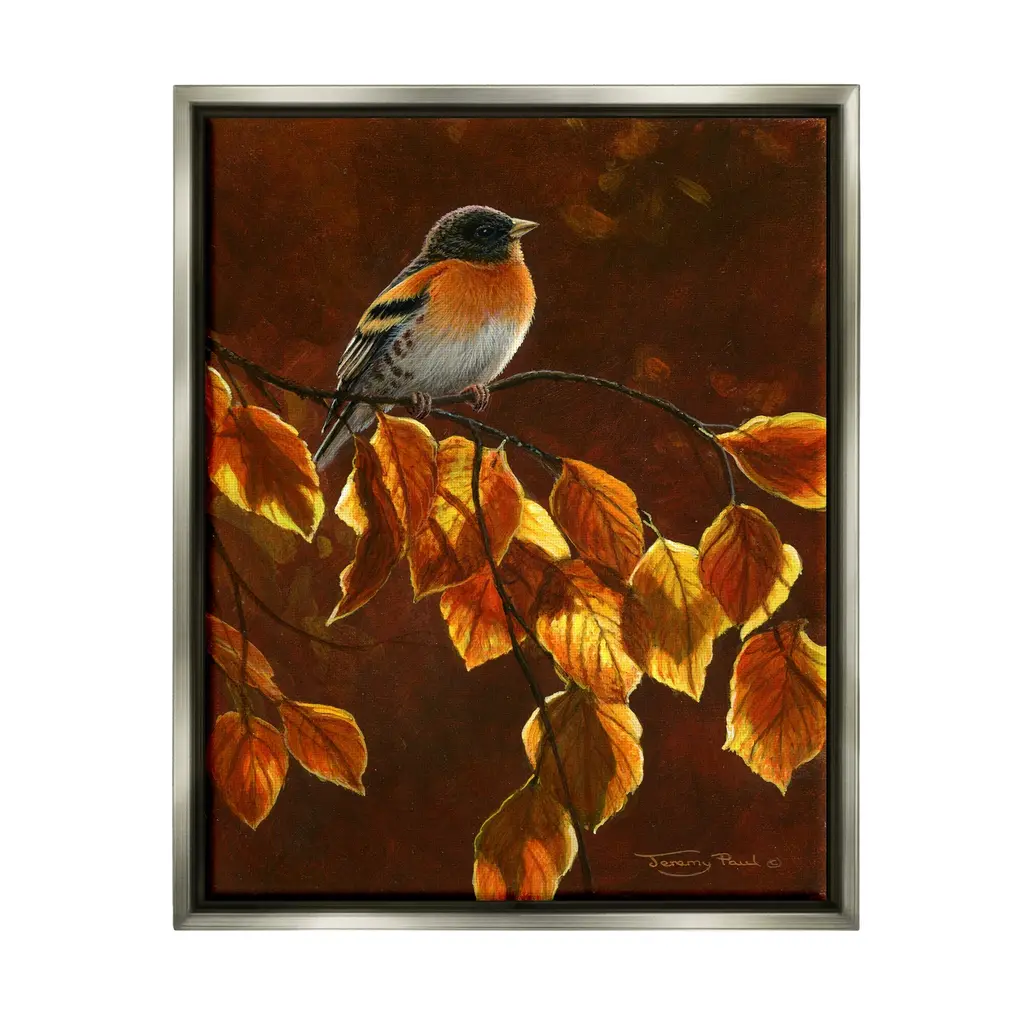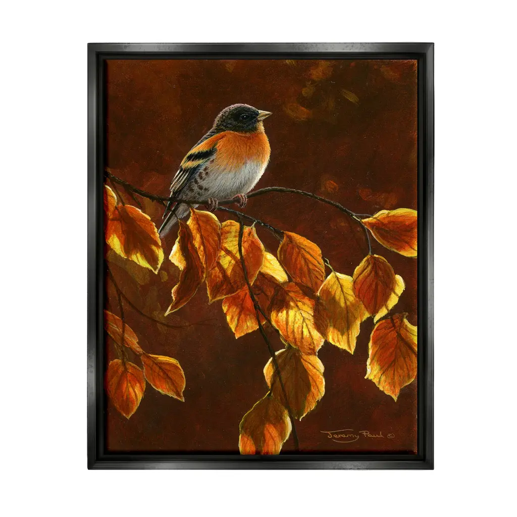 Elevate your home or office to the next level with Stupell Framed Floating Canvas Wall Art. Our premium hand-stretched canvas is mounted securely into a sturdy lightweight frame. The museum-style gap between the wrapped canvas and the box frame gives the illusion of floating artwork. Stupell Wall Art is made in the USA.Features: Dimensions: 17 x 1.7 x 21 Frame, 16 x 1.5 x 20 Canvas ArtFloating Frame Sizes Include Standard: 17 x 1.7 x 21 Oversized: 25 x 1.7 x 31Wall Art is Ready to Hang - No Installation or Hardware Needed. For Easy Set Up Lean or Layer Artwork on Shelf or Against Wall.Our elevated 1.7" Thick Floating Frame is the perfect complement to our canvas style Wall Art. We use only the highest quality inks in house with industry leading printing solutions. Canvas is hand stretched over a durable wood foundation and then mounted securly into a Modern Box Frame. Made in the USA.Artwork Relates To: Leaf, Plant, Animal, Bird, Finch, Tree, Bee Eater, Sparrow, BeakDesign by Jeremy Paul