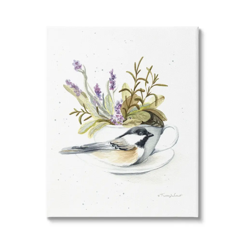 We create our stretched canvas to the highest standards. Using only the highest quality inks and canvas on Mimaki printers, we hand-cut and stretch each piece over a 1.5-inch thick wooden frame for hanging. As a result, the art comes ready to hang on the sturdy ledge with no installation required. Stupell Wall Art is made in the USA.Features: Dimensions: 16 x 1.5 x 20 InchesStretched Canvas Sizes Include Standard: 16 x 1.5 x 20 Large: 20 x 1.5 x 30 X-Large: 30 x 1.5 x 40 Oversized: 36 x 1.5 x 48Wall Art is Ready to Hang with Hardware Free Hanging. No installation required. For Easy Set Up Lean or Layer Artwork on Shelf or Against Wall.Our stretched canvas is created with the highest standards. We use only the highest quality inks and canvas on our in house Mimaki printers, and then hand cut and stretch each piece over a 1.5 inch thick wooden frame for hanging. Made In USA.Artwork Relates To: Animal, Bird, Flower, Plant, Painting, Herbs, Flower Arrangement, Lavender, Cup, Saucer, Beverage, Coffee, Coffee Cup, Floral, TeacupDesign by Kelley Talent