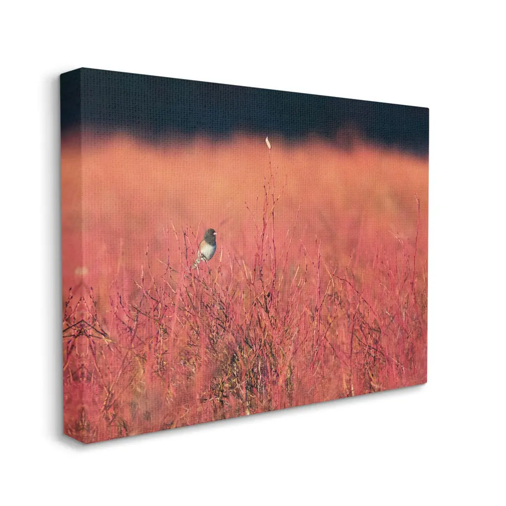 We create our stretched canvas to the highest standards. Using only the highest quality inks and canvas on Mimaki printers, we hand-cut and stretch each piece over a 1.5-inch thick wooden frame for hanging. As a result, the art comes ready to hang on the sturdy ledge with no installation required. Stupell Wall Art is made in the USA.Features: Dimensions: 20 x 1.5 x 16 InchesStretched Canvas Sizes Include Standard: 20 x 1.5 x 16 Large: 30 x 1.5 x 20 X-Large: 40 x 1.5 x 30 Oversized: 48 x 1.5 x 36Wall Art is Ready to Hang with Hardware Free Hanging. No installation required. For Easy Set Up Lean or Layer Artwork on Shelf or Against Wall.Our stretched canvas is created with the highest standards. We use only the highest quality inks and canvas on our in house Mimaki printers, and then hand cut and stretch each piece over a 1.5 inch thick wooden frame for hanging. Made In USA.Artwork Relates To: Animal, Bird, Finch, Nature, Sparrow, Grass, Plant, Field, Grassland, SwallowDesign by Nancy Crowell