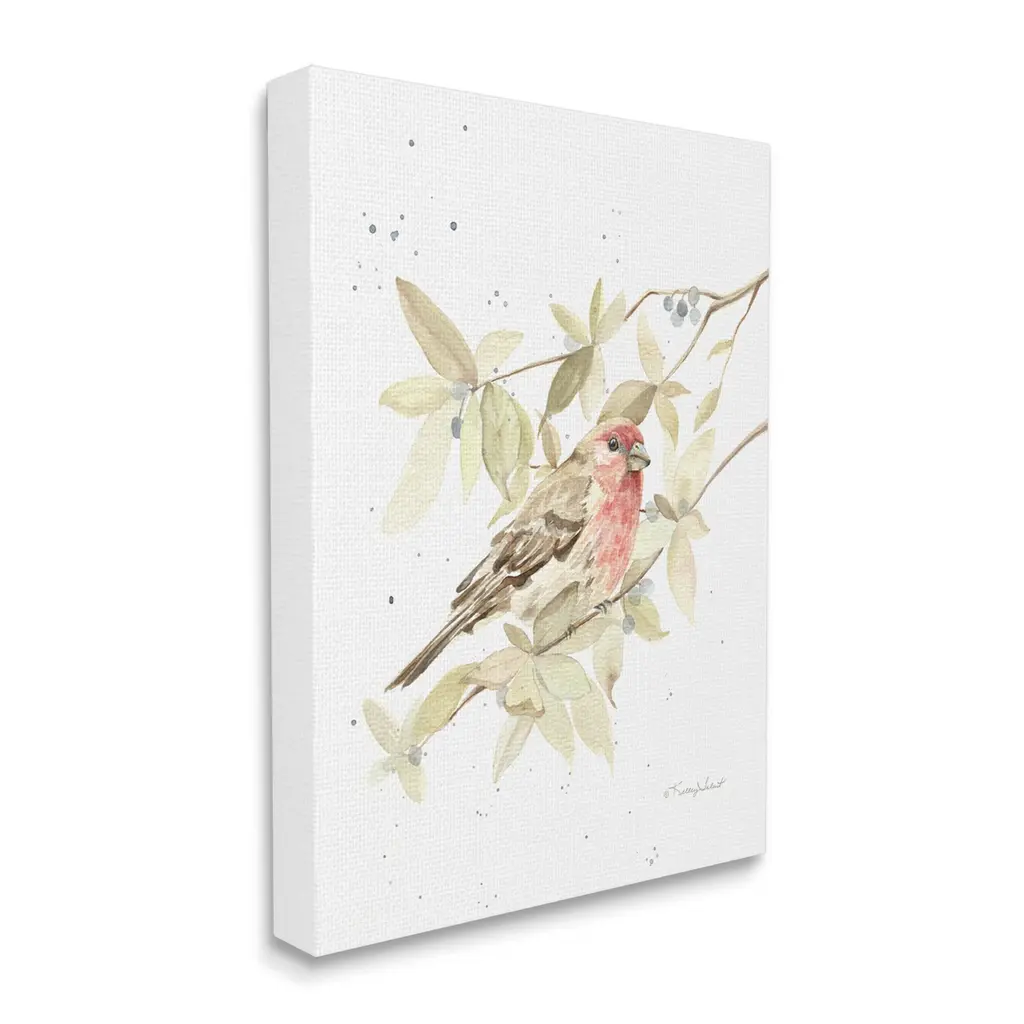 We create our stretched canvas to the highest standards. Using only the highest quality inks and canvas on Mimaki printers, we hand-cut and stretch each piece over a 1.5-inch thick wooden frame for hanging. As a result, the art comes ready to hang on the sturdy ledge with no installation required. Stupell Wall Art is made in the USA.Features: Dimensions: 16 x 1.5 x 20 InchesStretched Canvas Sizes Include Standard: 16 x 1.5 x 20 Large: 20 x 1.5 x 30 X-Large: 30 x 1.5 x 40 Oversized: 36 x 1.5 x 48Wall Art is Ready to Hang with Hardware Free Hanging. No installation required. For Easy Set Up Lean or Layer Artwork on Shelf or Against Wall.Our stretched canvas is created with the highest standards. We use only the highest quality inks and canvas on our in house Mimaki printers, and then hand cut and stretch each piece over a 1.5 inch thick wooden frame for hanging. Made In USA.Artwork Relates To: Animal, Bird, Finch, Branch, Tree, Botanical, PlantDesign by Kelley Talent