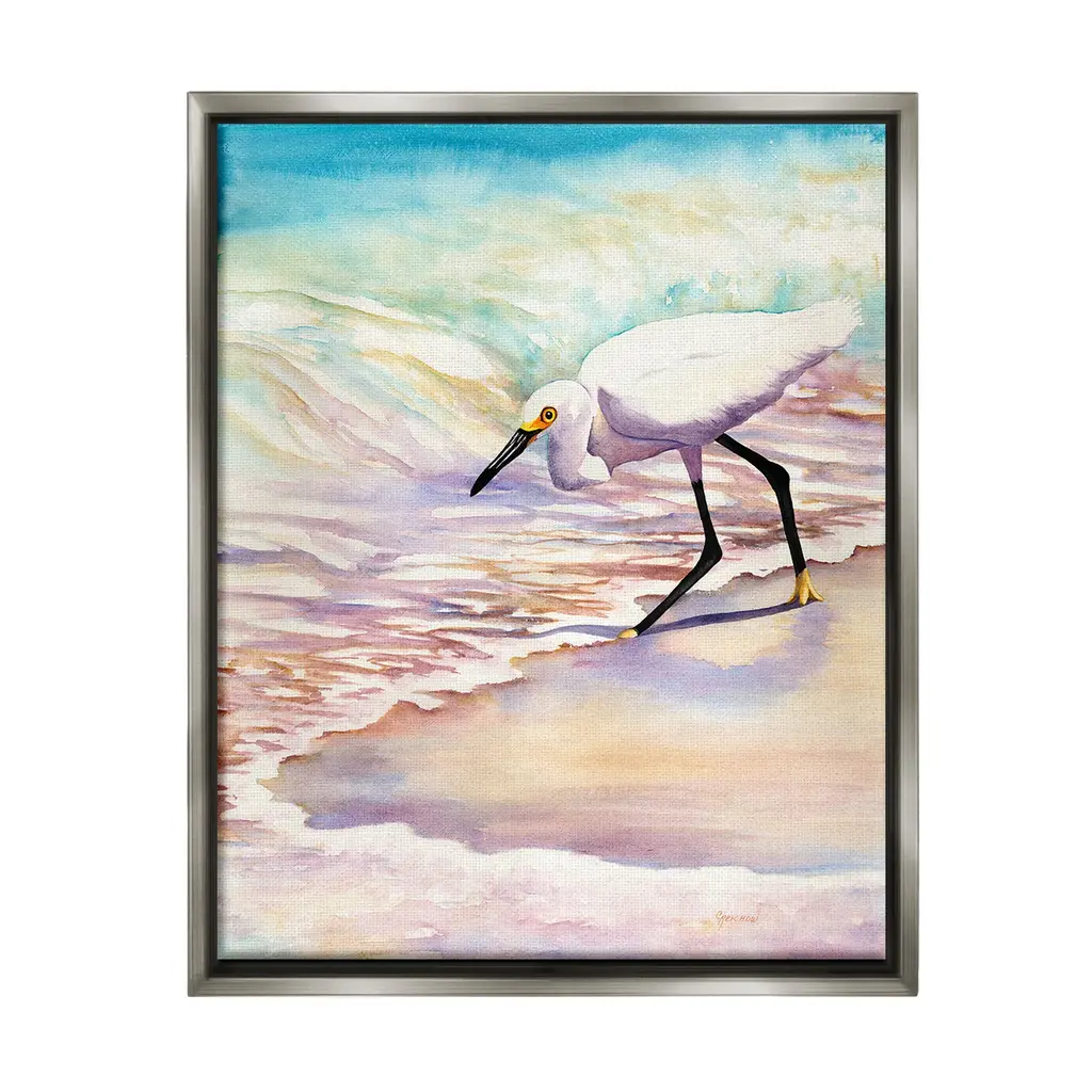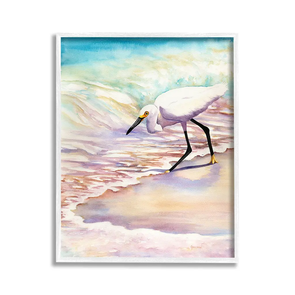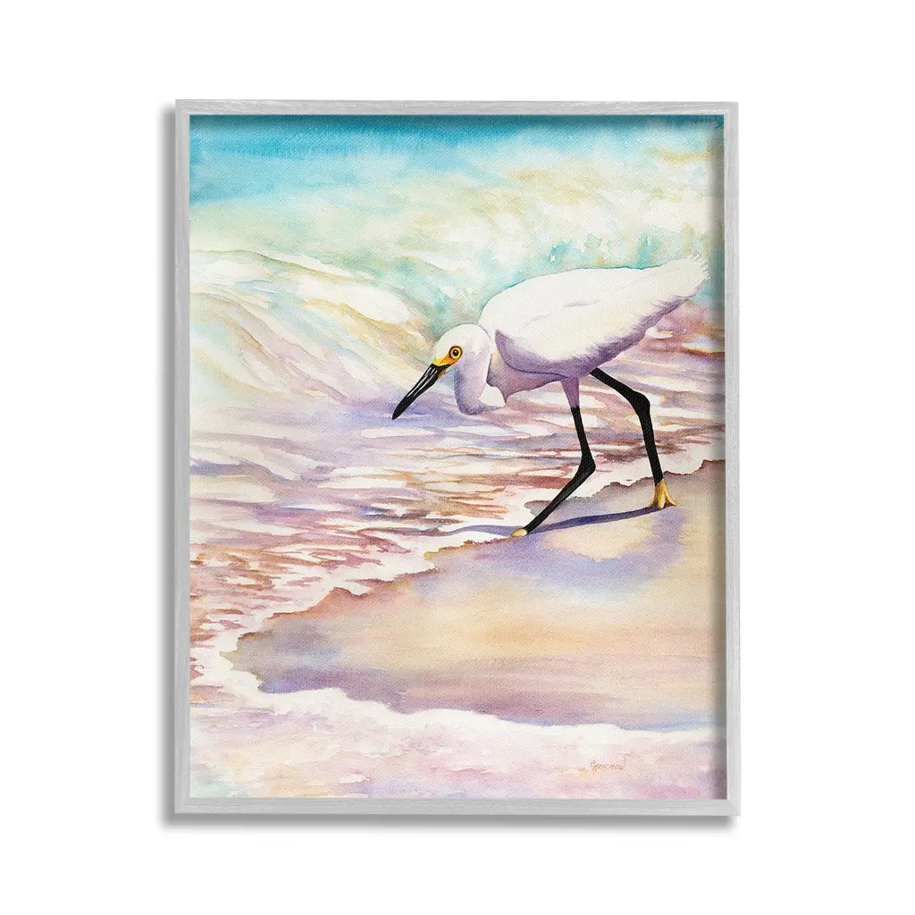 Add dimension to any room with our textured Framed Giclee Artwork. Our framed artwork is securely mounted into a 1.5-inch thick wood grain frame and ready to hang. Frames are available in three alluring styles: black, gray farmhouse and white. In addition, you should check out our oversized options if you want a statement piece. Stupell Wall Art is made in the USA.Features: Dimensions: 11 x 1.5 x 14 FramedFramed Giclee Products are available in the sizes 11"x14", 16"x20" or 24"x30". All Framed Giclee Products have a 1.5" Depth. Wall Art is Ready to Hang with Hardware Free Hanging. No installation required. For Easy Set Up Lean or Layer Artwork on Shelf or Against Wall.Our giclée prints are carefully mounted on a durable MDF backing, and then perfectly finished in a 1.5 inch thick woodgrain frame. Mounted frame colors include black, gray farmhouse and white. Made In USA.Artwork Relates To: Animal, Bird, Waterfowl, Egret, Heron, Beach, Shore, Pastel, NauticalDesign by Christine Reichow