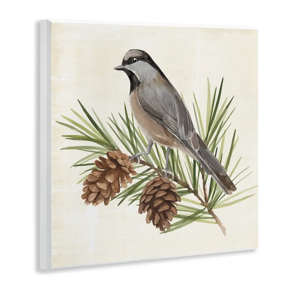 Our wall plaques start as high-quality lithograph prints mounted on durable 0.5-inch thick MDF wood. Each piece is hand finished and comes with a fresh layer of white foil on the sides to give it a crisp, clean look. Plaques arrive ready to hang without installation and come with removable plastic corners to keep them from damage in transit. Stupell Wall Art is made in the USA.Features: Dimensions: 12 x 0.5 x 12 InchesWall Art is Ready to Hang with Hardware Free Hanging. No installation required. For Easy Set Up Lean or Layer Artwork on Shelf or Against Wall.All of our wall plaques start off as high quality lithograph prints that are then mounted on durable 0.5 inch thick MDF wood. Each piece is hand finished and comes with a fresh layer of foil on the sides to give it a crisp clean look. Made In USA.Artwork Relates To: Plant, Tree, Conifer, Animal, Bird, Jay, Finch, Wren, Sparrow, Pine, PineconeDesign by Annie Warren