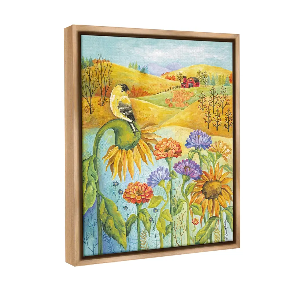 Elevate your home or office to the next level with Stupell Framed Floating Canvas Wall Art. Our premium hand-stretched canvas is mounted securely into a sturdy lightweight frame. The museum-style gap between the wrapped canvas and the box frame gives the illusion of floating artwork. Stupell Wall Art is made in the USA.Features: Dimensions: 17 x 1.7 x 21 Frame, 16 x 1.5 x 20 Canvas ArtFloating Frame Canvas Products are available in sizes 17"x21" and 25"x31". All Floating Frame Canvas Products have a 1.7" Depth.Wall Art is Ready to Hang with Hardware Free Hanging. No Installation required. For Easy Set Up Lean or Layer Artwork on Shelf or Against Wall. Artwork is Permently Fixed into the Frame.Our elevated 1.7" Thick Floating Frame is the perfect complement to our canvas style Wall Art. We use only the highest quality inks in house with industry leading printing solutions. Canvas is hand stretched over a durable wood foundation and then mounted securly into a Modern Box Frame. Made in the USA.Artwork Relates To: Painting, Modern, Daisy, Flower, Plant, Sunflower, Nature, Animal, Bird, Floral, Farm, Traditional, Pond, Lake, Barn, CountryDesign by Diane Kater
