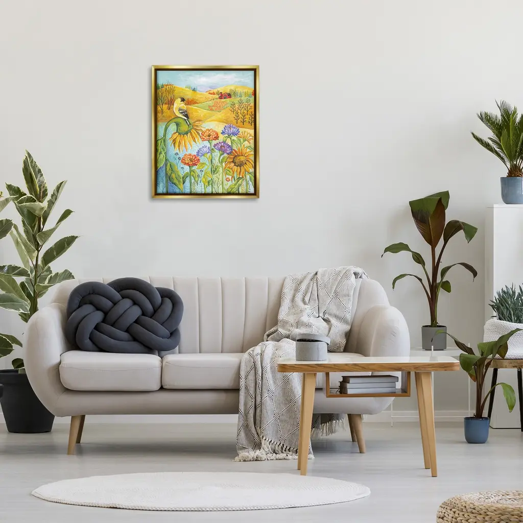 Elevate your home or office to the next level with Stupell Framed Floating Canvas Wall Art. Our premium hand-stretched canvas is mounted securely into a sturdy lightweight frame. The museum-style gap between the wrapped canvas and the box frame gives the illusion of floating artwork. Stupell Wall Art is made in the USA.Features: Dimensions: 17 x 1.7 x 21 Frame, 16 x 1.5 x 20 Canvas ArtFloating Frame Canvas Products are available in sizes 17"x21" and 25"x31". All Floating Frame Canvas Products have a 1.7" Depth.Wall Art is Ready to Hang with Hardware Free Hanging. No Installation required. For Easy Set Up Lean or Layer Artwork on Shelf or Against Wall. Artwork is Permently Fixed into the Frame.Our elevated 1.7" Thick Floating Frame is the perfect complement to our canvas style Wall Art. We use only the highest quality inks in house with industry leading printing solutions. Canvas is hand stretched over a durable wood foundation and then mounted securly into a Modern Box Frame. Made in the USA.Artwork Relates To: Painting, Modern, Daisy, Flower, Plant, Sunflower, Nature, Animal, Bird, Floral, Farm, Traditional, Pond, Lake, Barn, CountryDesign by Diane Kater