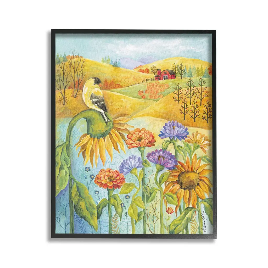 Add dimension to any room with our textured Framed Giclee Artwork. Our framed artwork is securely mounted into a 1.5-inch thick wood grain frame and ready to hang. Frames are available in three alluring styles: black, gray farmhouse and white. In addition, you should check out our oversized options if you want a statement piece. Stupell Wall Art is made in the USA.Features: Dimensions: 11 x 1.5 x 14 FramedFramed Giclee Products are available in the sizes 11"x14", 16"x20" or 24"x30". All Framed Giclee Products have a 1.5" Depth. Wall Art is Ready to Hang with Hardware Free Hanging. No installation required. For Easy Set Up Lean or Layer Artwork on Shelf or Against Wall.Our giclée prints are carefully mounted on a durable MDF backing, and then perfectly finished in a 1.5 inch thick woodgrain frame. Mounted frame colors include black, gray farmhouse and white. Made In USA.Artwork Relates To: Painting, Modern, Daisy, Flower, Plant, Sunflower, Nature, Animal, Bird, Floral, Farm, Traditional, Pond, Lake, Barn, CountryDesign by Diane Kater