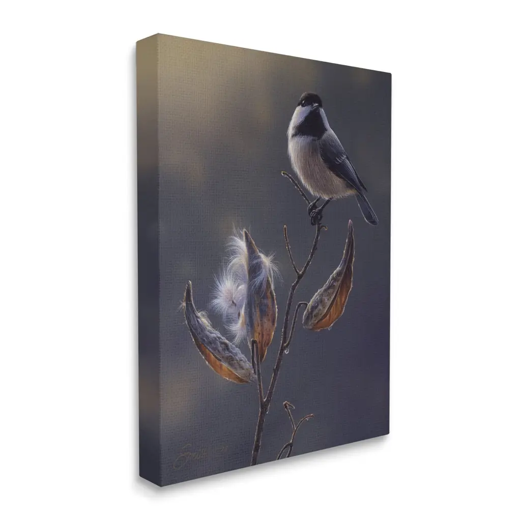 Stupell Bird Perched Floral Seed Pods Canvas Wall Art By Daniel Smith - 24 X 30