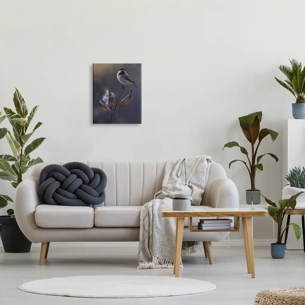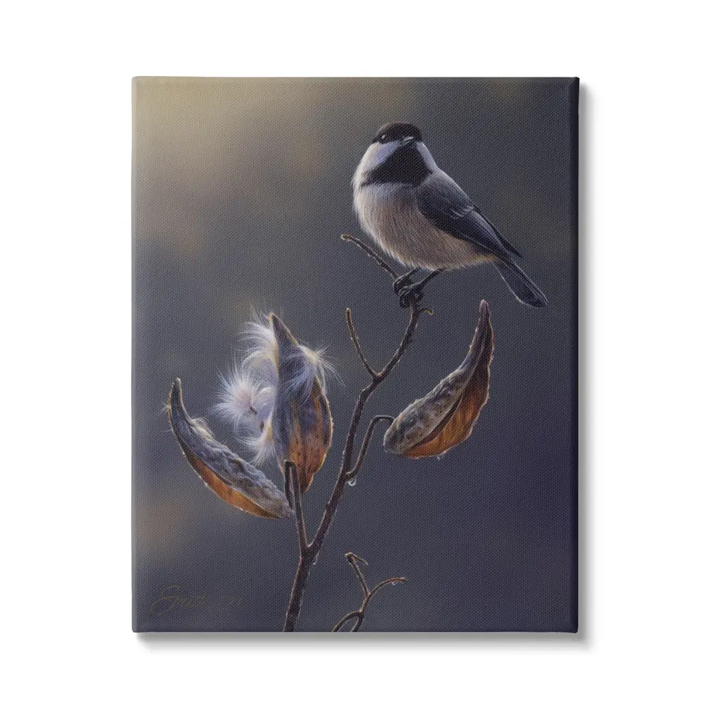 We create our stretched canvas to the highest standards. Using only the highest quality inks and canvas on Mimaki printers, we hand-cut and stretch each piece over a 1.5-inch thick wooden frame for hanging. As a result, the art comes ready to hang on the sturdy ledge with no installation required. Stupell Wall Art is made in the USA.Features: Dimensions: 16 x 1.5 x 20 InchesStretched Canvas Sizes Include Standard: 16 x 1.5 x 20 Large: 20 x 1.5 x 30 X-Large: 30 x 1.5 x 40 Oversized: 36 x 1.5 x 48Wall Art is Ready to Hang - No Installation or Hardware Needed. For Easy Set Up Lean or Layer Artwork on Shelf or Against Wall.Our stretched canvas is created with the highest standards. We use only the highest quality inks and canvas on our in house Mimaki printers, and then hand cut and stretch each piece over a 1.5 inch thick wooden frame for hanging. Made In USA.Artwork Relates To: Animal, Bird, Finch, Flower, Plant, Botanical, Seed Pod, NatureDesign by Daniel Smith