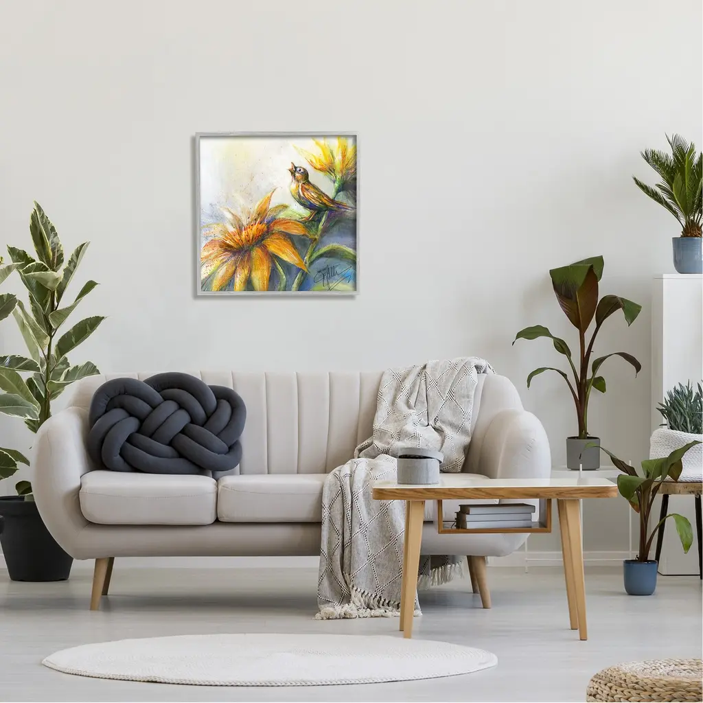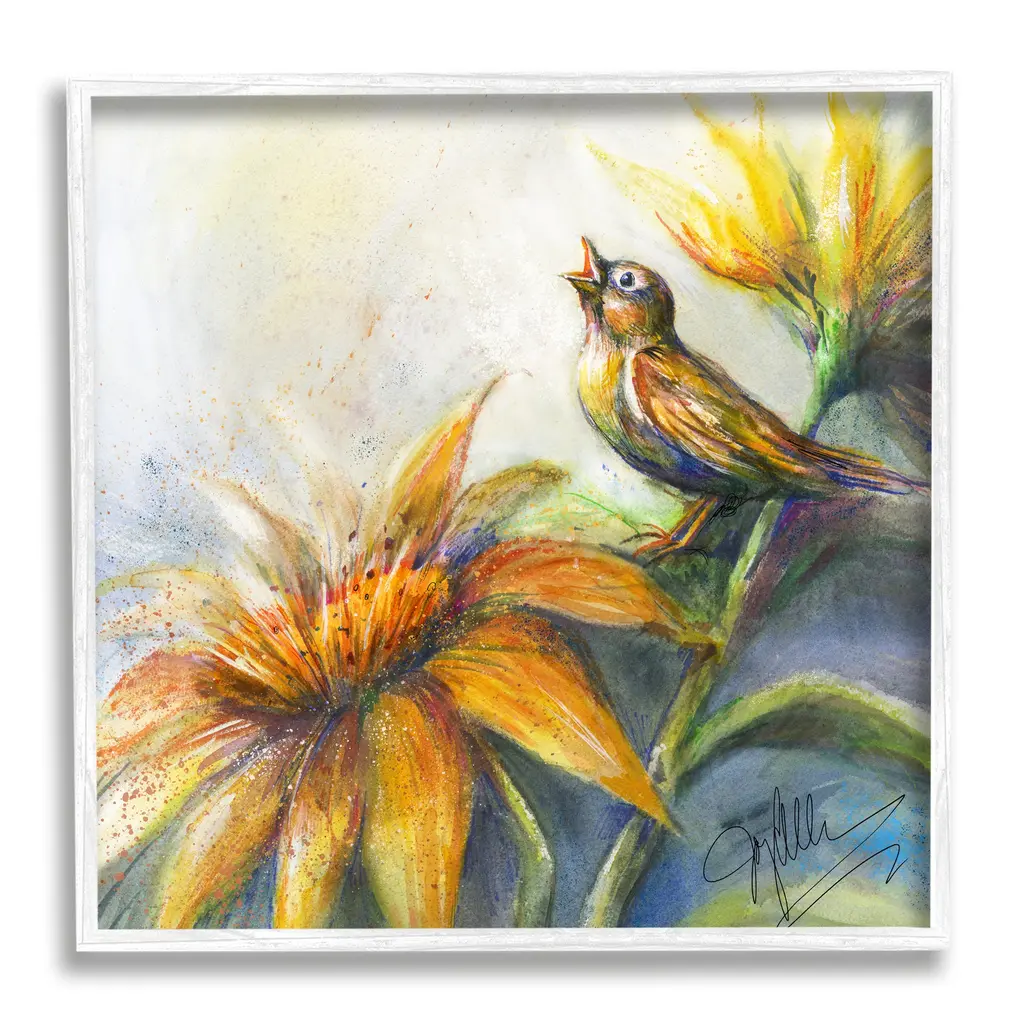 Add dimension to any room with our textured Framed Giclee Artwork. Our framed artwork is securely mounted into a 1.5-inch thick wood grain frame and ready to hang. Frames are available in three alluring styles: black, gray farmhouse and white. In addition, you should check out our oversized options if you want a statement piece. Stupell Wall Art is made in the USA.Features: Dimensions: 12 x 1.5 x 12 FramedFramed Giclee Sizes Include Standard: 12 x 1.5 x 12 Large: 17 x 1.5 x 17 Oversized: 24 x 1.5 x 24Wall Art is Ready to Hang with Hardware Free Hanging. No installation required. For Easy Set Up Lean or Layer Artwork on Shelf or Against Wall.Our giclée prints are carefully mounted on a durable MDF backing, and then perfectly finished in a 1.5 inch thick woodgrain frame. Mounted frame colors include black, gray farmhouse and white. Made In USA.Artwork Relates To: Painting, Animal, Bird, Flower, Plant, ModernDesign by Joy Allen
