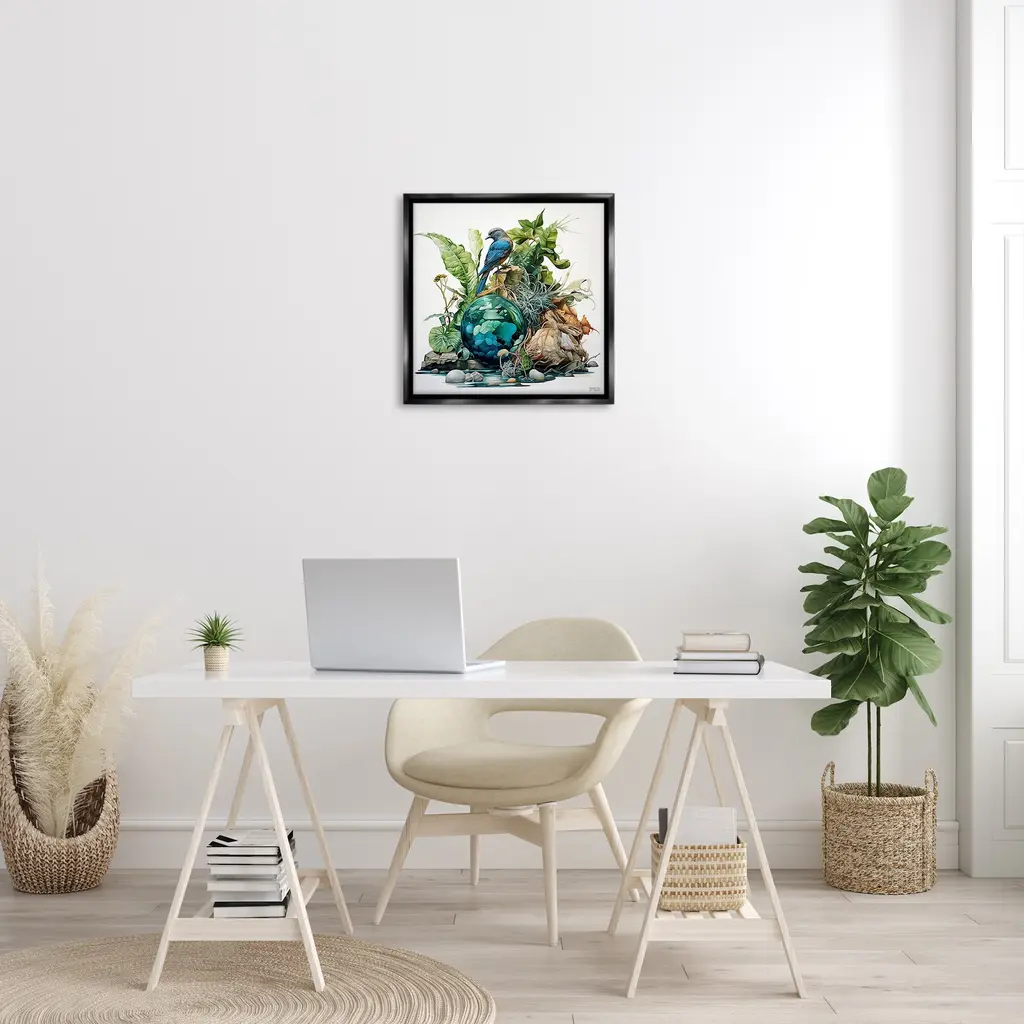 Elevate your home or office to the next level with Stupell Framed Floating Canvas Wall Art. Our premium hand-stretched canvas is mounted securely into a sturdy lightweight frame. The museum-style gap between the wrapped canvas and the box frame gives the illusion of floating artwork. Stupell Wall Art is made in the USA.Features: Dimensions: 18 x 1.7 x 18 Frame, 17 x 1.5 x 17 Canvas ArtFloating Frame Canvas Products are available in sizes 18"x18" and 25"x25". All Floating Frame Canvas Products have a 1.7" Depth.Wall Art is Ready to Hang with Hardware Free Hanging. No Installation required. For Easy Set Up Lean or Layer Artwork on Shelf or Against Wall. Artwork is Permently Fixed into the Frame.Our elevated 1.7" Thick Floating Frame is the perfect complement to our canvas style Wall Art. We use only the highest quality inks in house with industry leading printing solutions. Canvas is hand stretched over a durable wood foundation and then mounted securly into a Modern Box Frame. Made in the USA.Artwork Relates To: Animal, Bird, Jay, Blue Jay, Bluebird, Botanical, Woodland, LeafDesign by RB