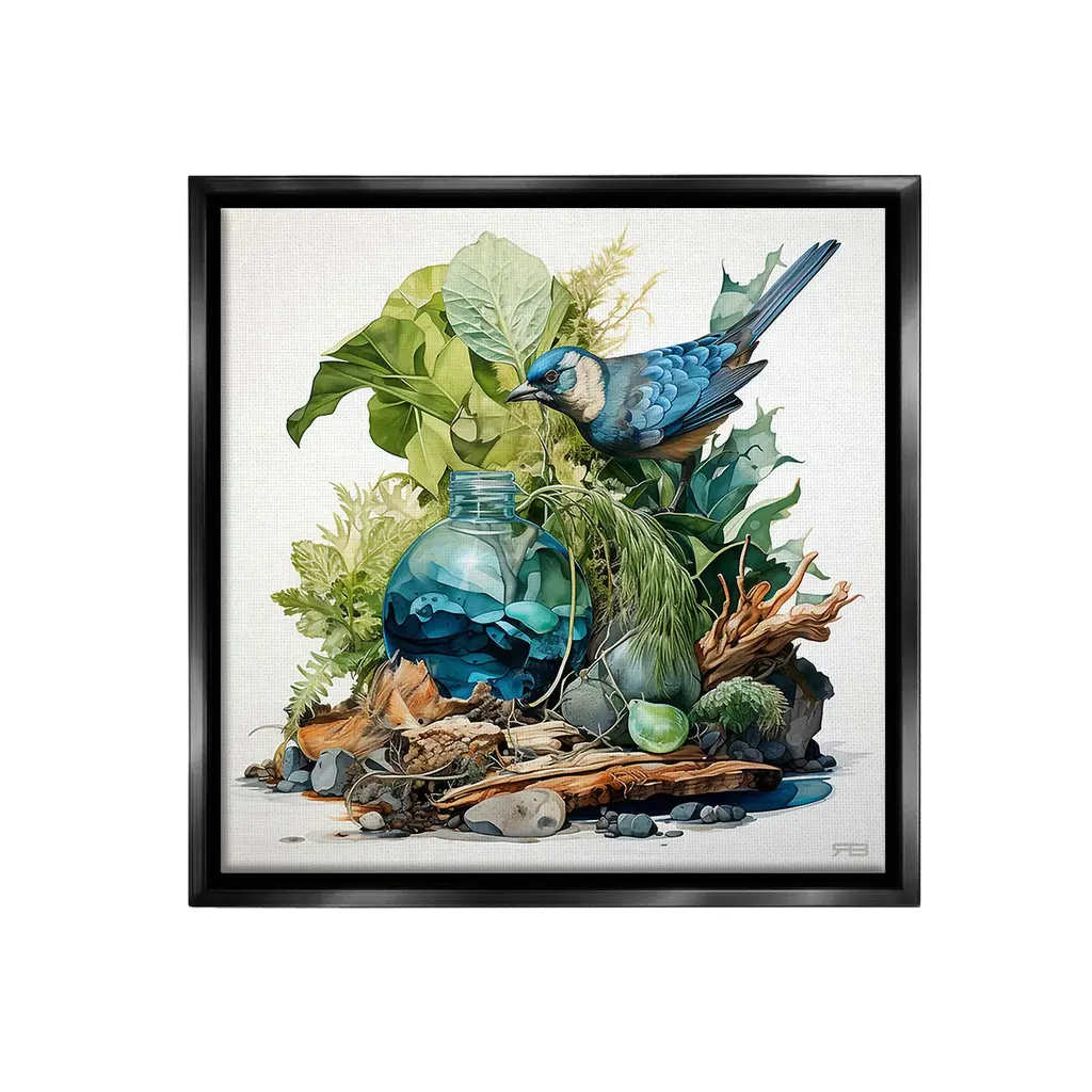 Elevate your home or office to the next level with Stupell Framed Floating Canvas Wall Art. Our premium hand-stretched canvas is mounted securely into a sturdy lightweight frame. The museum-style gap between the wrapped canvas and the box frame gives the illusion of floating artwork. Stupell Wall Art is made in the USA.Features: Dimensions: 18 x 1.7 x 18 Frame, 17 x 1.5 x 17 Canvas ArtFloating Frame Canvas Products are available in sizes 18"x18" and 25"x25". All Floating Frame Canvas Products have a 1.7" Depth.Wall Art is Ready to Hang with Hardware Free Hanging. No Installation required. For Easy Set Up Lean or Layer Artwork on Shelf or Against Wall. Artwork is Permently Fixed into the Frame.Our elevated 1.7" Thick Floating Frame is the perfect complement to our canvas style Wall Art. We use only the highest quality inks in house with industry leading printing solutions. Canvas is hand stretched over a durable wood foundation and then mounted securly into a Modern Box Frame. Made in the USA.Artwork Relates To: Animal, Bird, Jay, Blue Jay, Bluebird, Botanical, Woodland, LeafDesign by RB