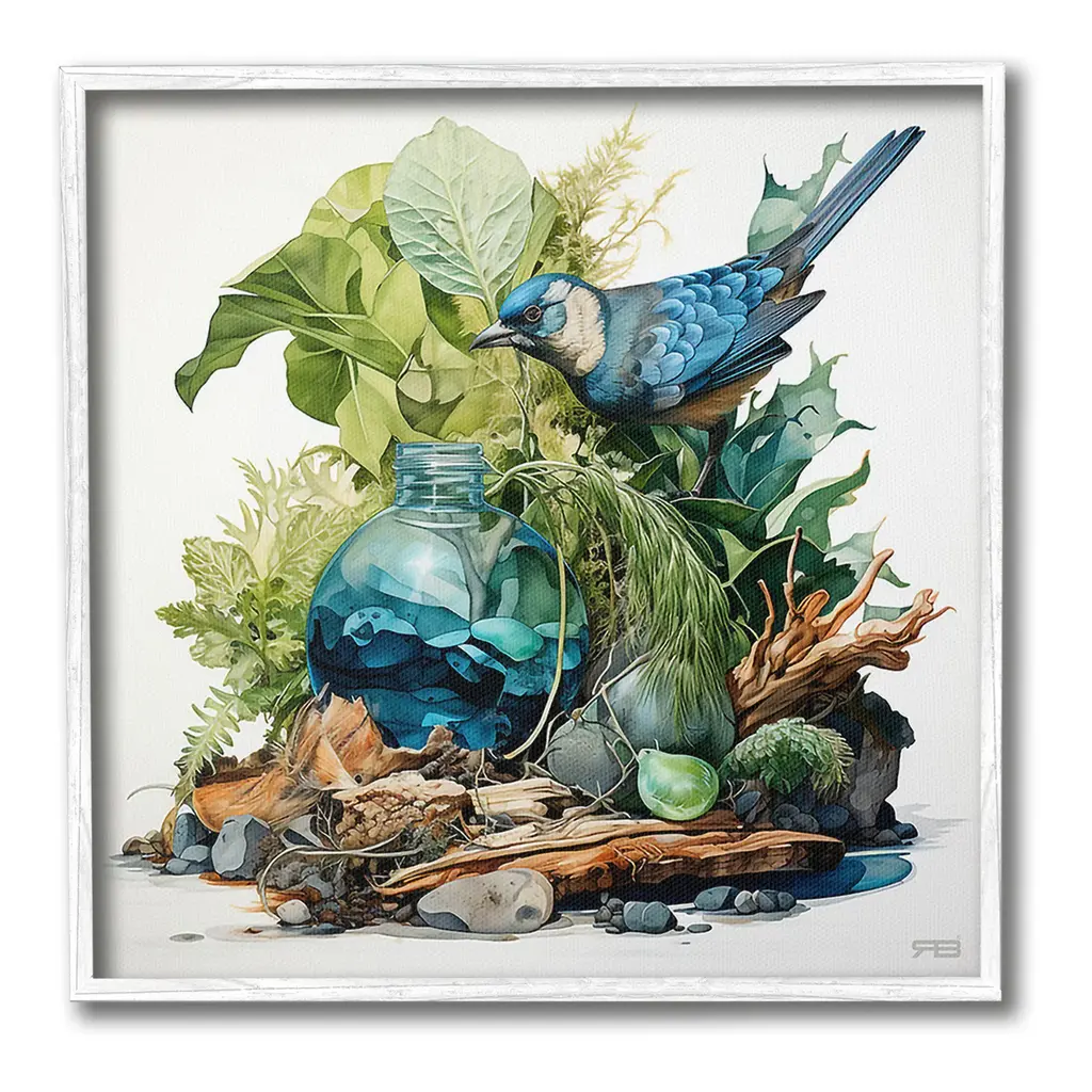 Add dimension to any room with our textured Framed Giclee Artwork. Our framed artwork is securely mounted into a 1.5-inch thick wood grain frame and ready to hang. Frames are available in three alluring styles: black, gray farmhouse and white. In addition, you should check out our oversized options if you want a statement piece. Stupell Wall Art is made in the USA.Features: Dimensions: 12 x 1.5 x 12 FramedFramed Giclee Product Sizes Include 12"x12", 17"x17", and 24"x24". Framed Giclee Products have a 1.5" Depth. Wall Art is Ready to Hang with Hardware Free Hanging. No installation required. For Easy Set Up Lean or Layer Artwork on Shelf or Against Wall.Our giclée prints are carefully mounted on a durable MDF backing, and then perfectly finished in a 1.5 inch thick woodgrain frame. Mounted frame colors include black, gray farmhouse and white. Made In USA.Artwork Relates To: Animal, Bird, Jay, Blue Jay, Bluebird, Botanical, Woodland, LeafDesign by RB
