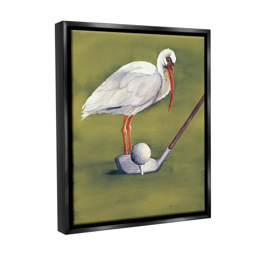 Elevate your home or office to the next level with Stupell Framed Floating Canvas Wall Art. Our premium hand-stretched canvas is mounted securely into a sturdy lightweight frame. The museum-style gap between the wrapped canvas and the box frame gives the illusion of floating artwork. Stupell Wall Art is made in the USA.Features: Dimensions: 17 x 1.7 x 21 Frame, 16 x 1.5 x 20 Canvas ArtFloating Frame Canvas Products are available in sizes 17"x21" and 25"x31". All Floating Frame Canvas Products have a 1.7" Depth.Wall Art is Ready to Hang with Hardware Free Hanging. No Installation required. For Easy Set Up Lean or Layer Artwork on Shelf or Against Wall. Artwork is Permently Fixed into the Frame.Our elevated 1.7" Thick Floating Frame is the perfect complement to our canvas style Wall Art. We use only the highest quality inks in house with industry leading printing solutions. Canvas is hand stretched over a durable wood foundation and then mounted securly into a Modern Box Frame. Made in the USA.Artwork Relates To: Animal, Bird, Waterfowl, Golf, Sport, Golf Ball, Golf ClubDesign by Christine Reichow