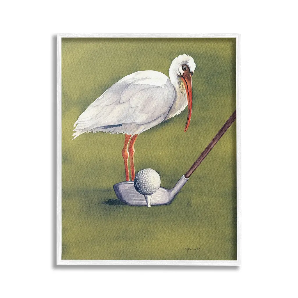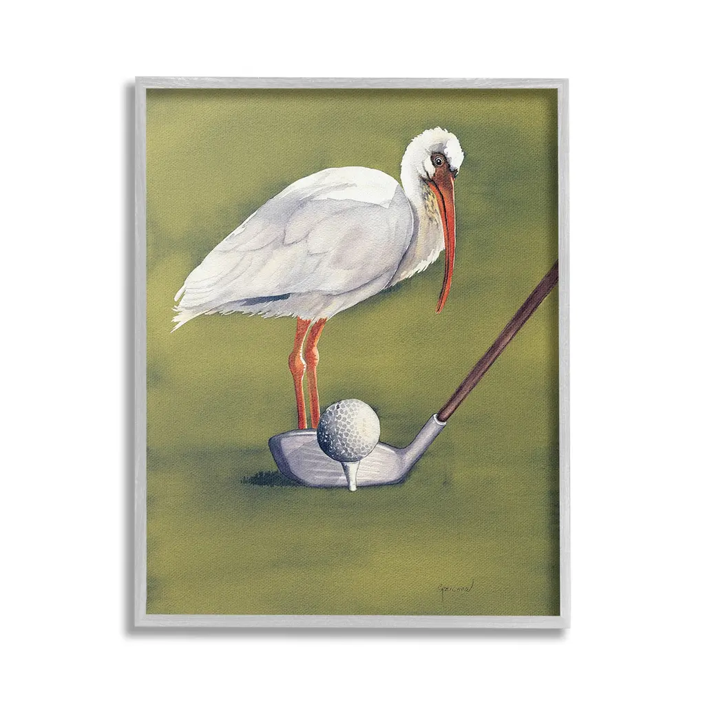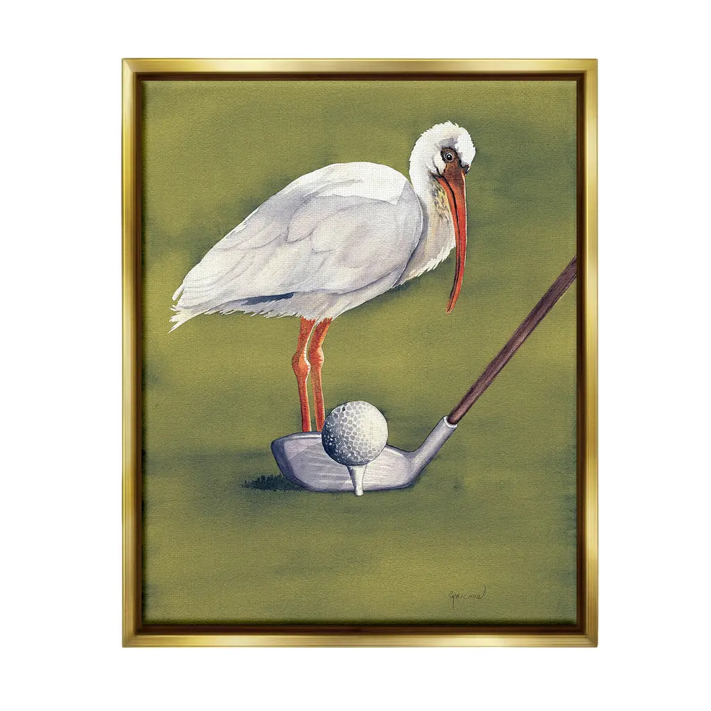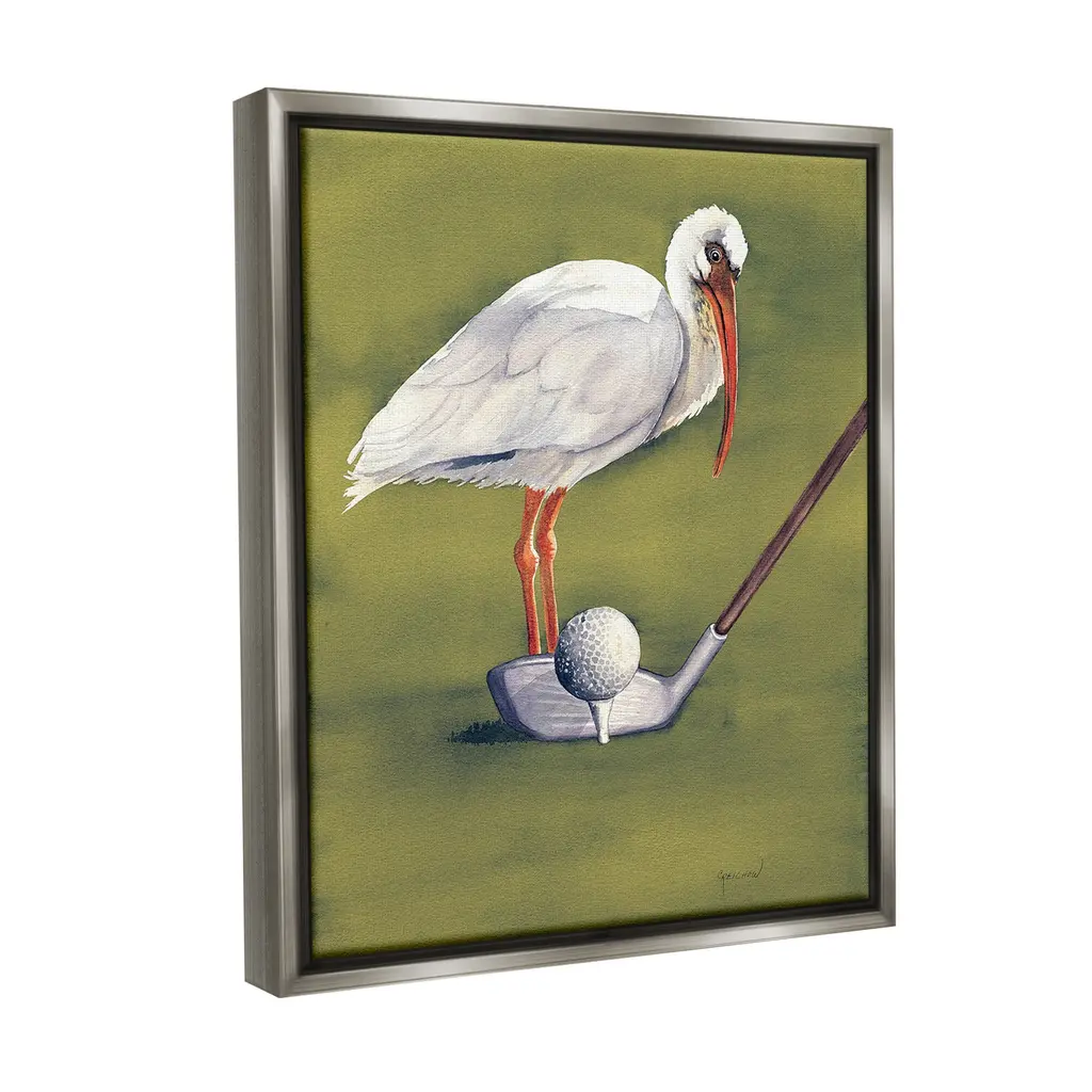 Elevate your home or office to the next level with Stupell Framed Floating Canvas Wall Art. Our premium hand-stretched canvas is mounted securely into a sturdy lightweight frame. The museum-style gap between the wrapped canvas and the box frame gives the illusion of floating artwork. Stupell Wall Art is made in the USA.Features: Dimensions: 17 x 1.7 x 21 Frame, 16 x 1.5 x 20 Canvas ArtFloating Frame Canvas Products are available in sizes 17"x21" and 25"x31". All Floating Frame Canvas Products have a 1.7" Depth.Wall Art is Ready to Hang with Hardware Free Hanging. No Installation required. For Easy Set Up Lean or Layer Artwork on Shelf or Against Wall. Artwork is Permently Fixed into the Frame.Our elevated 1.7" Thick Floating Frame is the perfect complement to our canvas style Wall Art. We use only the highest quality inks in house with industry leading printing solutions. Canvas is hand stretched over a durable wood foundation and then mounted securly into a Modern Box Frame. Made in the USA.Artwork Relates To: Animal, Bird, Waterfowl, Golf, Sport, Golf Ball, Golf ClubDesign by Christine Reichow