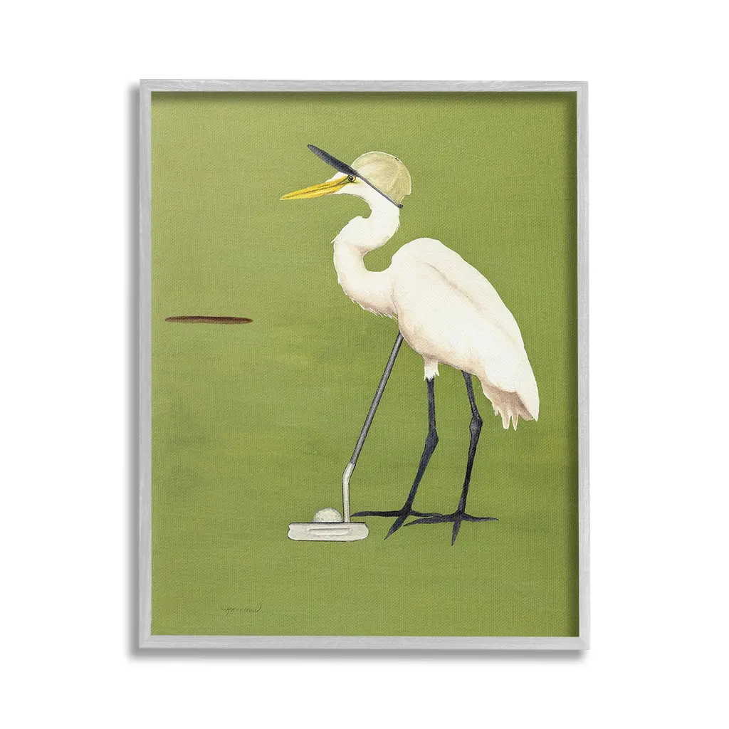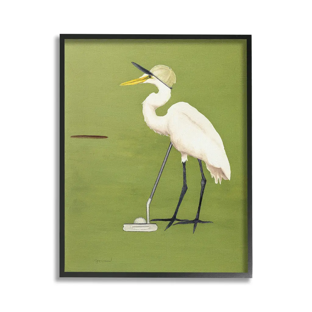 Elevate your home or office to the next level with Stupell Framed Floating Canvas Wall Art. Our premium hand-stretched canvas is mounted securely into a sturdy lightweight frame. The museum-style gap between the wrapped canvas and the box frame gives the illusion of floating artwork. Stupell Wall Art is made in the USA.Features: Dimensions: 17 x 1.7 x 21 Frame, 16 x 1.5 x 20 Canvas ArtFloating Frame Canvas Products are available in sizes 17"x21" and 25"x31". All Floating Frame Canvas Products have a 1.7" Depth.Wall Art is Ready to Hang with Hardware Free Hanging. No Installation required. For Easy Set Up Lean or Layer Artwork on Shelf or Against Wall. Artwork is Permently Fixed into the Frame.Our elevated 1.7" Thick Floating Frame is the perfect complement to our canvas style Wall Art. We use only the highest quality inks in house with industry leading printing solutions. Canvas is hand stretched over a durable wood foundation and then mounted securly into a Modern Box Frame. Made in the USA.Artwork Relates To: Animal, Bird, Waterfowl, Golf, Sport, Golf Ball, Golf ClubDesign by Christine Reichow