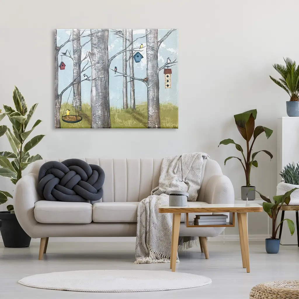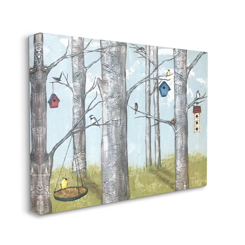Stupell Birdhouses Woodland Birch Trees Canvas Wall Art By Jade Reynolds - 48 X 36