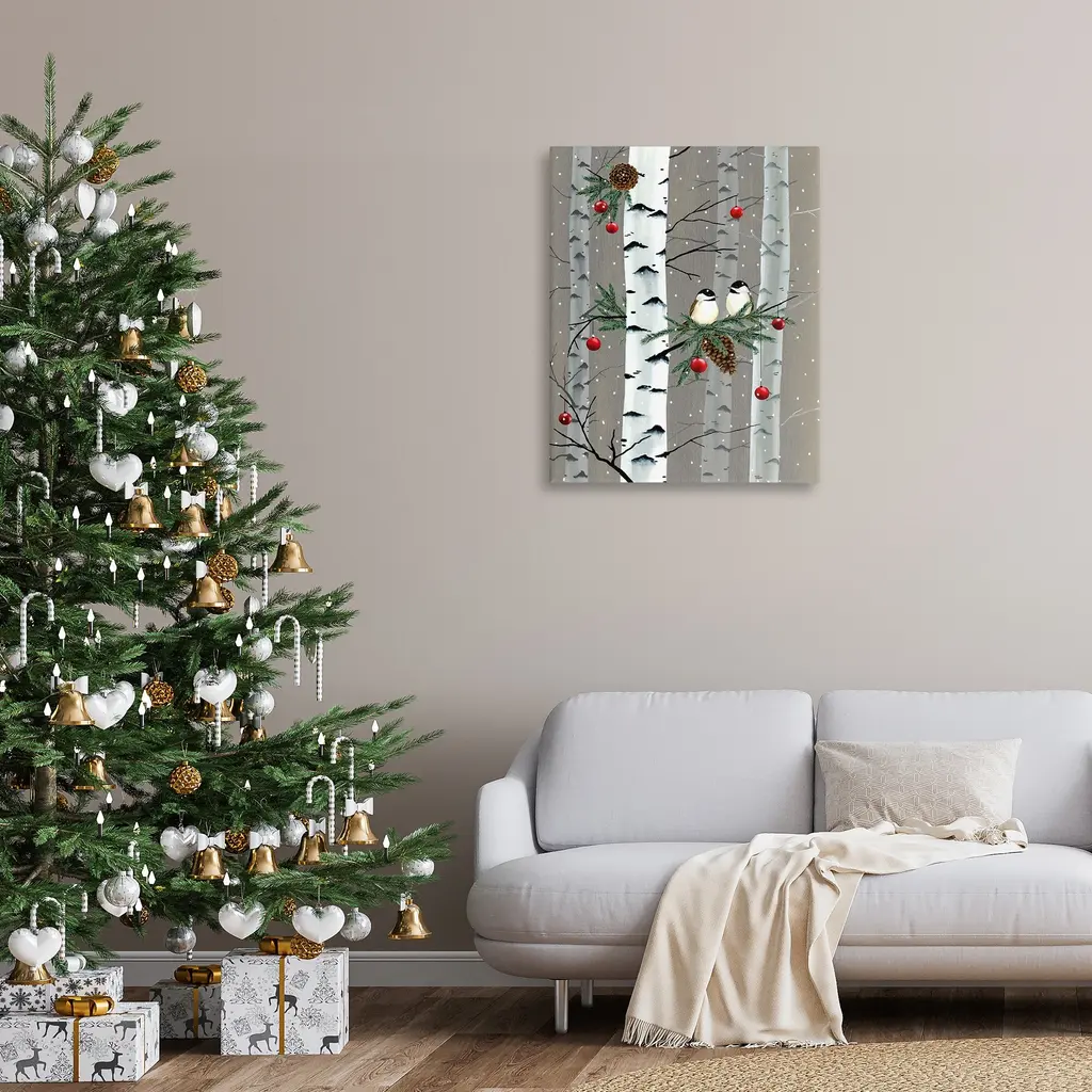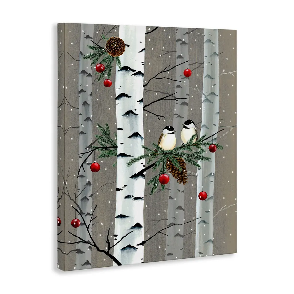 Stupell Birds And Holiday Ornaments Birch Tree Forest Canvas Wall Art - 30 X 40