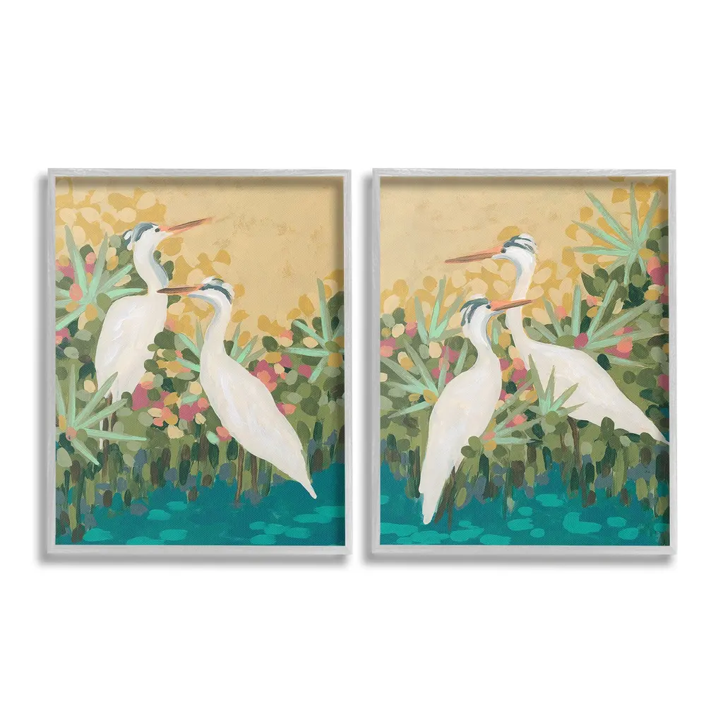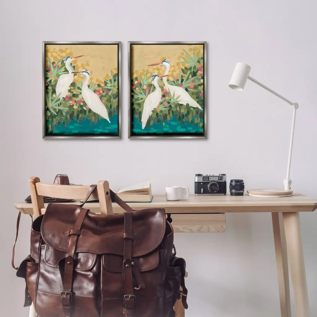 Elevate your home or office to the next level with Stupell Framed Floating Canvas Wall Art. Our premium hand-stretched canvas is mounted securely into a sturdy lightweight frame. The museum-style gap between the wrapped canvas and the box frame gives the illusion of floating artwork. Stupell Wall Art is made in the USA.Features: Dimensions: 2 Piece Set, Each Frame is 17 x 1.7 x 21Two Piece Floater Framed Canvas are available as 17x21 or 25x31 Panels. All Floater Frame Products have a 1.7" Depth.Wall Art is Ready to Hang with Hardware Free Hanging. No Installation required. For Easy Set Up Lean or Layer Artwork on Shelf or Against Wall. Artwork is Permently Fixed into the Frame.Our elevated 1.7" Thick Floating Frame is the perfect complement to our canvas style Wall Art. We use only the highest quality inks in house with industry leading printing solutions. Canvas is hand stretched over a durable wood foundation and then mounted securly into a Modern Box Frame. Made in the USA.Artwork Relates To: Animal, Bird, Waterfowl, Painting, Crane Bird, Egret, Heron, Nature, Pond, River, Abstract, ModernDesign by June Erica Vess