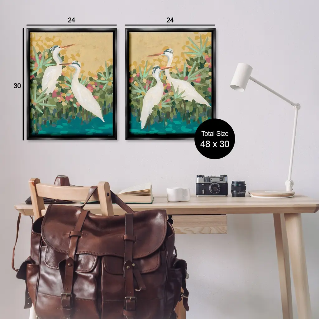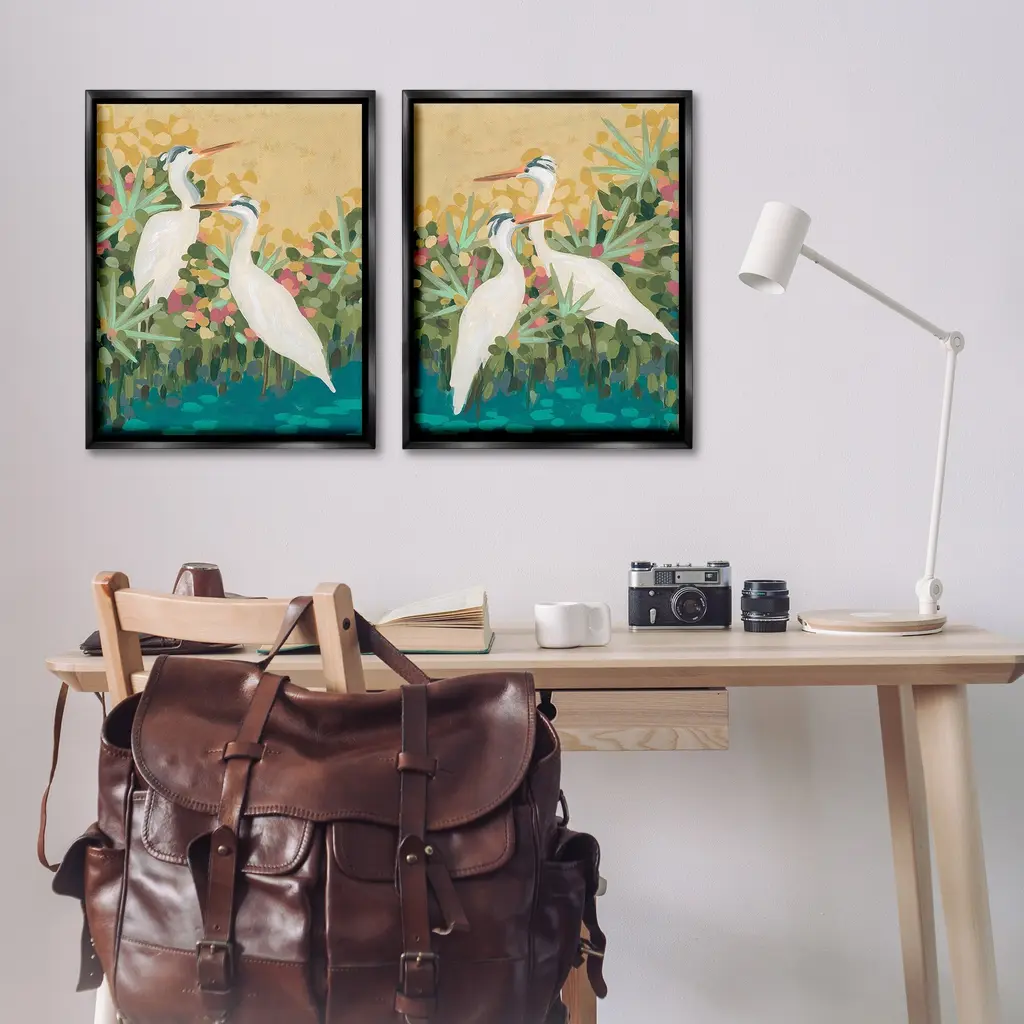 Elevate your home or office to the next level with Stupell Framed Floating Canvas Wall Art. Our premium hand-stretched canvas is mounted securely into a sturdy lightweight frame. The museum-style gap between the wrapped canvas and the box frame gives the illusion of floating artwork. Stupell Wall Art is made in the USA.Features: Dimensions: 2 Piece Set, Each Frame is 17 x 1.7 x 21Two Piece Floater Framed Canvas are available as 17x21 or 25x31 Panels. All Floater Frame Products have a 1.7" Depth.Wall Art is Ready to Hang with Hardware Free Hanging. No Installation required. For Easy Set Up Lean or Layer Artwork on Shelf or Against Wall. Artwork is Permently Fixed into the Frame.Our elevated 1.7" Thick Floating Frame is the perfect complement to our canvas style Wall Art. We use only the highest quality inks in house with industry leading printing solutions. Canvas is hand stretched over a durable wood foundation and then mounted securly into a Modern Box Frame. Made in the USA.Artwork Relates To: Animal, Bird, Waterfowl, Painting, Crane Bird, Egret, Heron, Nature, Pond, River, Abstract, ModernDesign by June Erica Vess