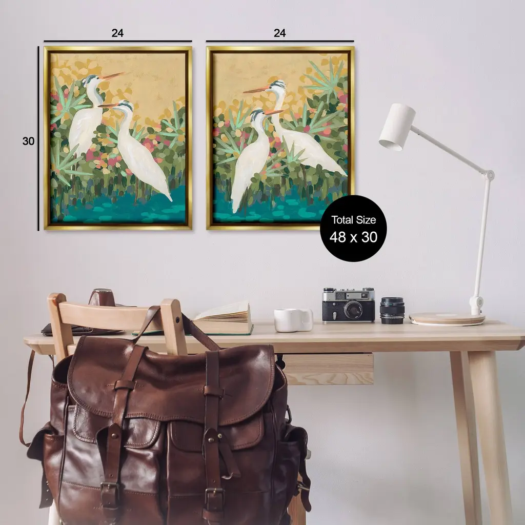 Elevate your home or office to the next level with Stupell Framed Floating Canvas Wall Art. Our premium hand-stretched canvas is mounted securely into a sturdy lightweight frame. The museum-style gap between the wrapped canvas and the box frame gives the illusion of floating artwork. Stupell Wall Art is made in the USA.Features: Dimensions: 2 Piece Set, Each Frame is 17 x 1.7 x 21Two Piece Floater Framed Canvas are available as 17x21 or 25x31 Panels. All Floater Frame Products have a 1.7" Depth.Wall Art is Ready to Hang with Hardware Free Hanging. No Installation required. For Easy Set Up Lean or Layer Artwork on Shelf or Against Wall. Artwork is Permently Fixed into the Frame.Our elevated 1.7" Thick Floating Frame is the perfect complement to our canvas style Wall Art. We use only the highest quality inks in house with industry leading printing solutions. Canvas is hand stretched over a durable wood foundation and then mounted securly into a Modern Box Frame. Made in the USA.Artwork Relates To: Animal, Bird, Waterfowl, Painting, Crane Bird, Egret, Heron, Nature, Pond, River, Abstract, ModernDesign by June Erica Vess